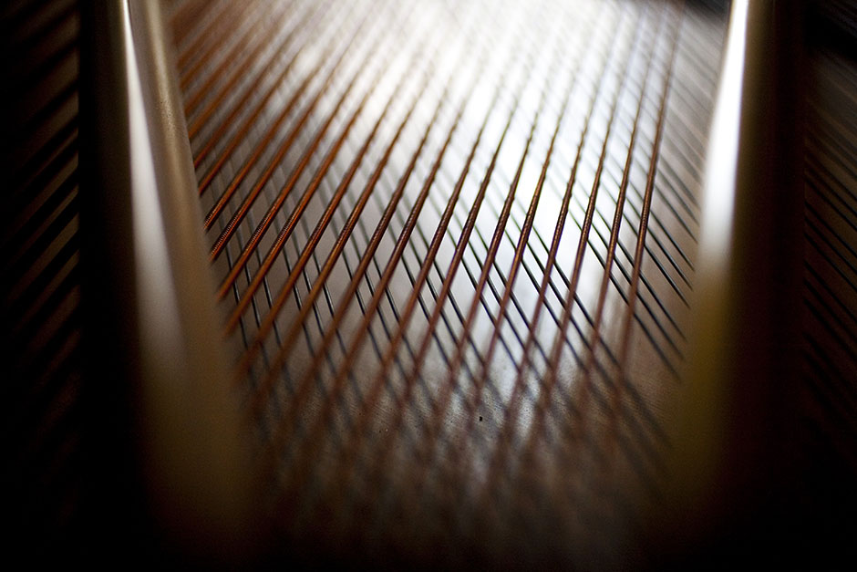 A network of strings intersects in a River House piano. Stephanie Mitchell/Harvard Staff Photographer