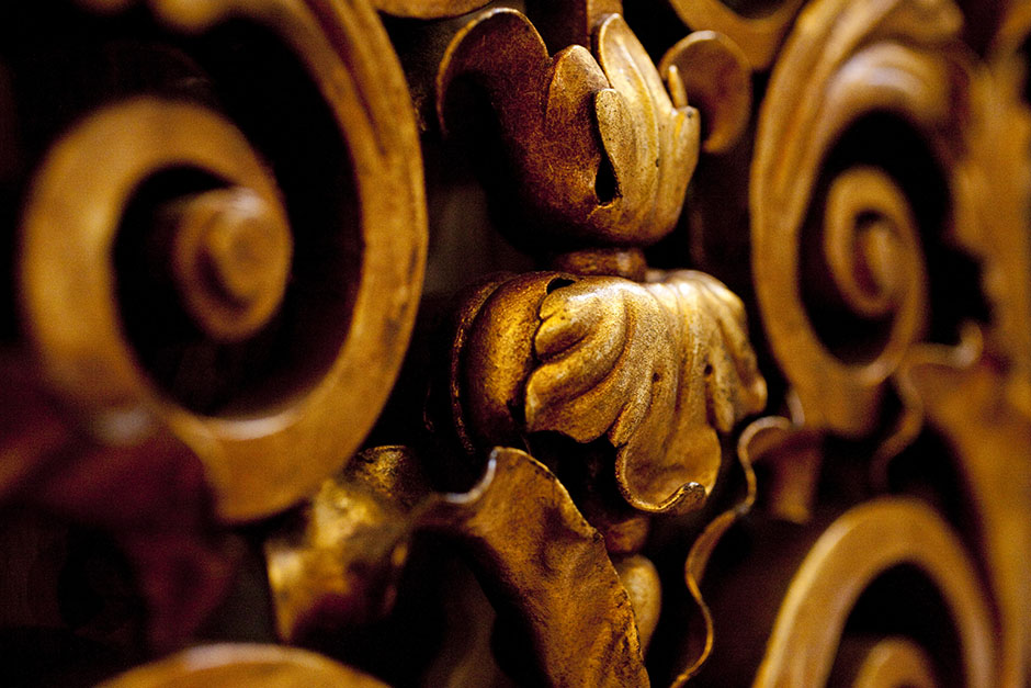 What seems like rich bronze is actually wood: These distinctive embellishments blaze inside Widener Library. Stephanie Mitchell/Harvard Staff Photographer