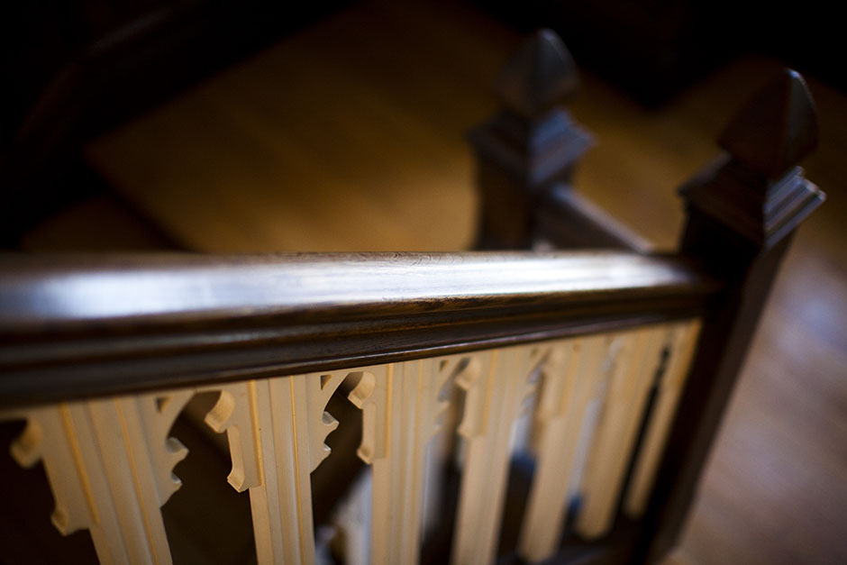The pulpit stairs of Memorial Church spiral skyward. Stephanie Mitchell/Harvard Staff Photographer