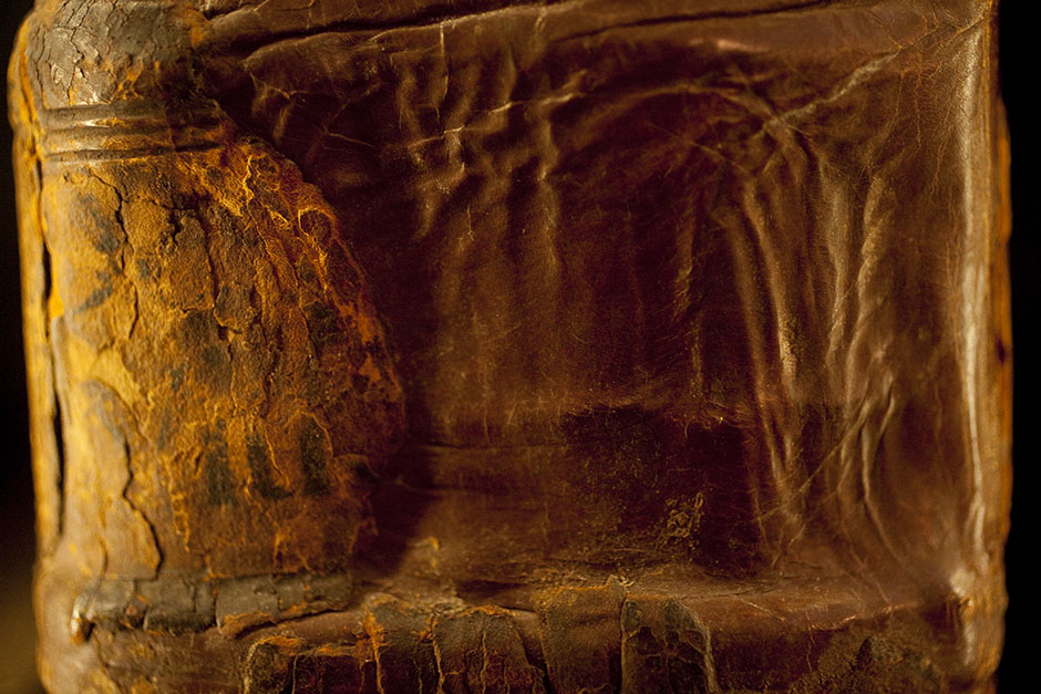 A well-worn volume inside Houghton Library could be mistaken for ancient stone. Stephanie Mitchell/Harvard Staff Photographer