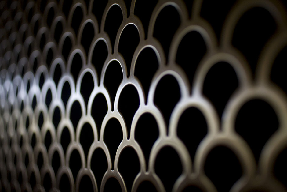 Repeating circles form a patterned grate inside the Ames Courtroom of Austin Hall. Stephanie Mitchell/Harvard Staff Photographer