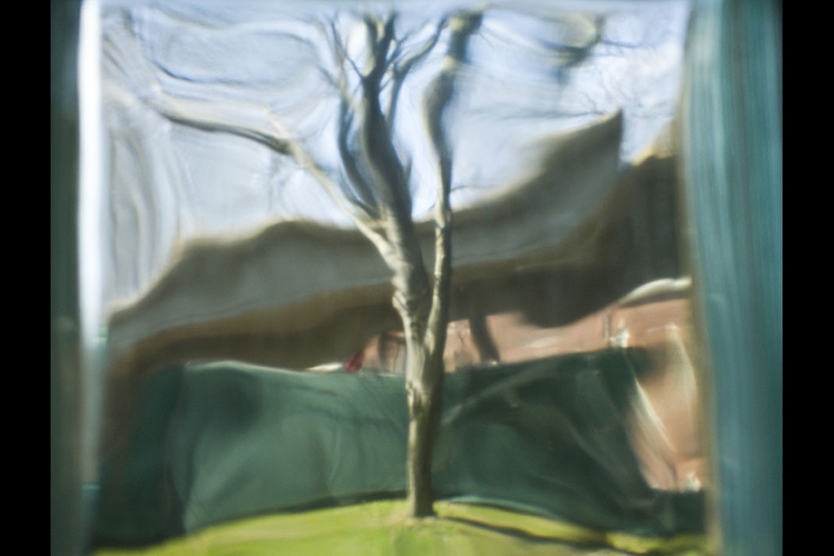 This lone tree is psychedelically distorted in a glass wall of the Carpenter Center. Stephanie Mitchell/Harvard Staff Photographer