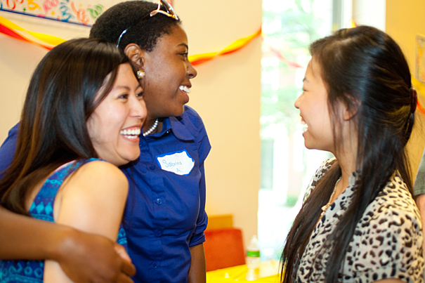 Across the room, Rodburg threw her arms around Marjorie Lopez Marinez, a sophomore at Georgetown University, who walked in from her summer job smartly dressed in pearls and heels. A native of Boston’s Mission Hill neighborhood, Lopez Marinez is interning this summer at Sen. John Kerry’s office in Boston and will continue interning in Washington, D.C., this fall, working around her school schedule.