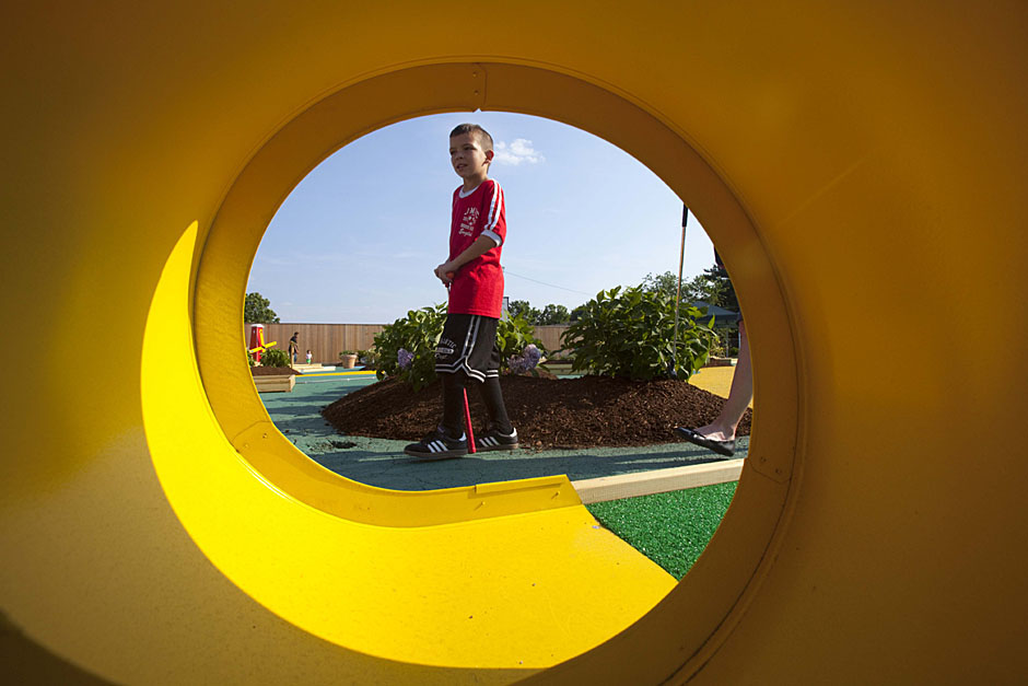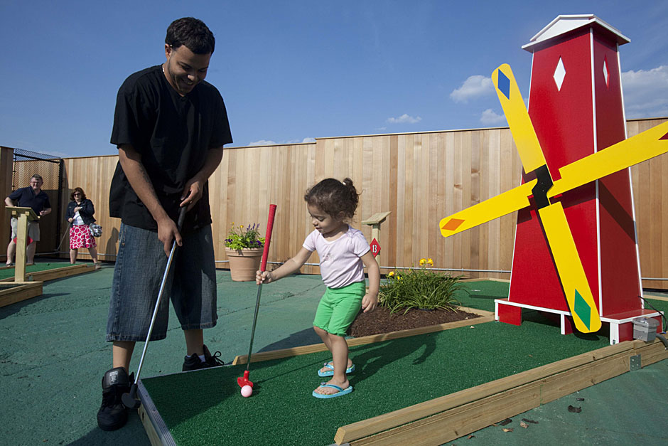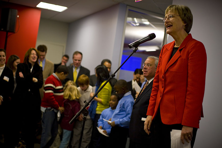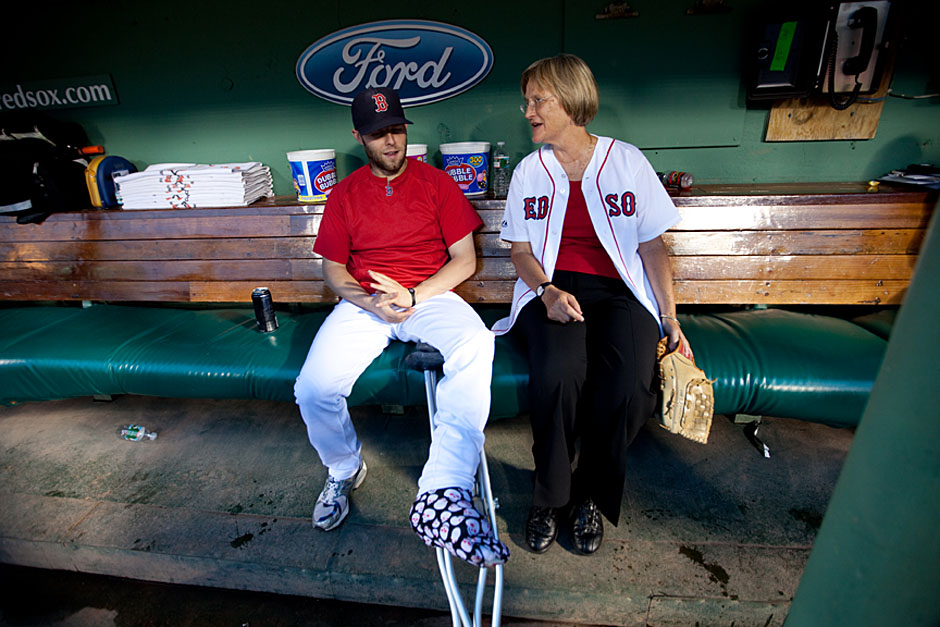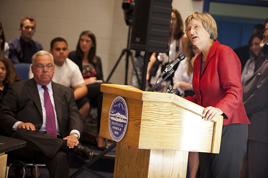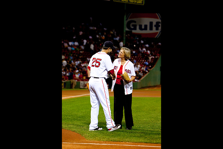 Prior to throwing out the first pitch at Fenway Park for the Red Sox v. Baltimore Orioles game, Harvard President Drew Faust met Red Sox second baseman Dustin Pedroia in the dugout. Rose Lincoln/Harvard Staff Photographer Hit me with your best shot! President Drew Faust lets one fly. Rose Lincoln/Harvard Staff Photographer Red Sox first baseman Mike Lowell caught President Drew Faust’s pitch, where afterward they met for the first time. Rose Lincoln/Harvard Staff Photographer President Drew Faust (at podium) was on hand as Harvard University and Cisco unveiled a gift to Boston and Cambridge schools that will allow students and teachers to video conference with individuals around the world. Stephanie Mitchell/Harvard Staff Photographer Using an Internet2 connection donated by Harvard and speaking on TelePresence equipment donated by Cisco, the group “met” with Cambridge Superintendent Jeff Young and Dean Kathleen McCartney of the Harvard Graduate School of Education (front center on screen) to celebrate the launch of the partnership. Stephanie Mitchell/Harvard Staff Photographer The gift also gives the schools access to Harvard’s Internet2, a faster, education-only Internet network. Stephanie Mitchell/Harvard Staff Photographer Fifth-graders from the Elihu Greenwood School explore polymers during a science day event hosted by Harvard Step UP. Stephanie Mitchell/Harvard Staff Photographer Students work on an experiment with their teacher during a science event hosted by Harvard Step UP. Stephanie Mitchell/Harvard Staff Photographer Allston residents play miniature golf during the opening of the Harvard Allston Field and Fairway. Kris Snibbe/Harvard Staff Photographer A Brighton resident plays miniature golf at the Harvard Allston Field and Fairway. Kris Snibbe/Harvard Staff Photographer A Brighton family enjoys the batting cages at the Harvard Allston Field and Fairway. Kris Snibbe/Harvard Staff Photographer Brighton residents get ready to hit the green. Kris Snibbe/Harvard Staff Photographer Students participate in the Library Park Construction Club to learn about soil, trees, and other aspects of park design. Stephanie Mitchell/Harvard Staff Photographer Harvard designers Dennis Swinford (left) and Emily Mueller De Celis (with sunglasses) lead children on a tour of the Library Park site.