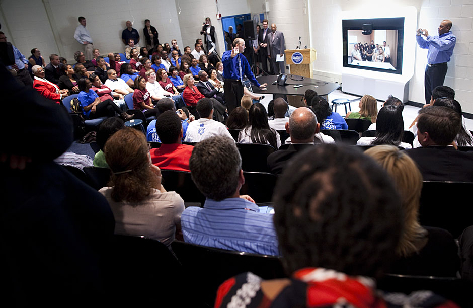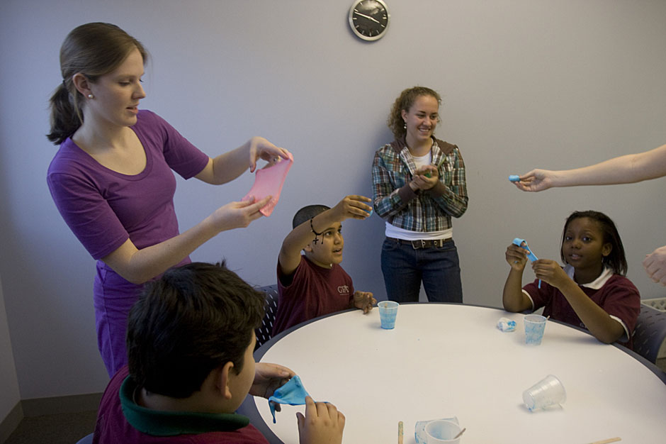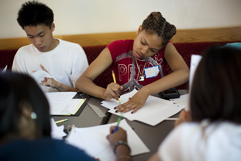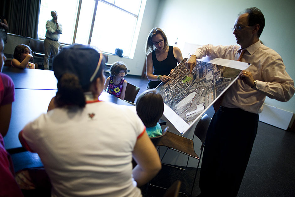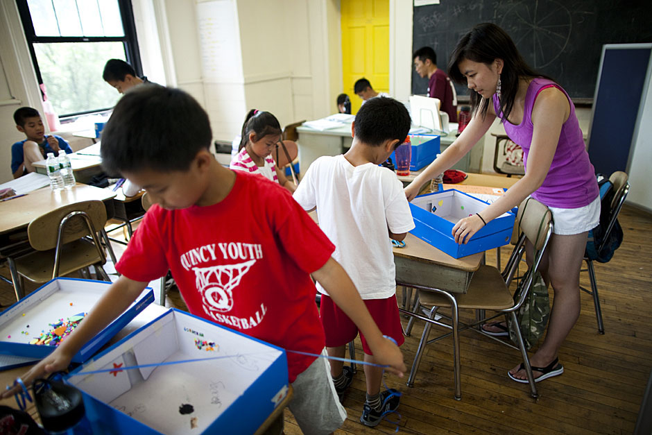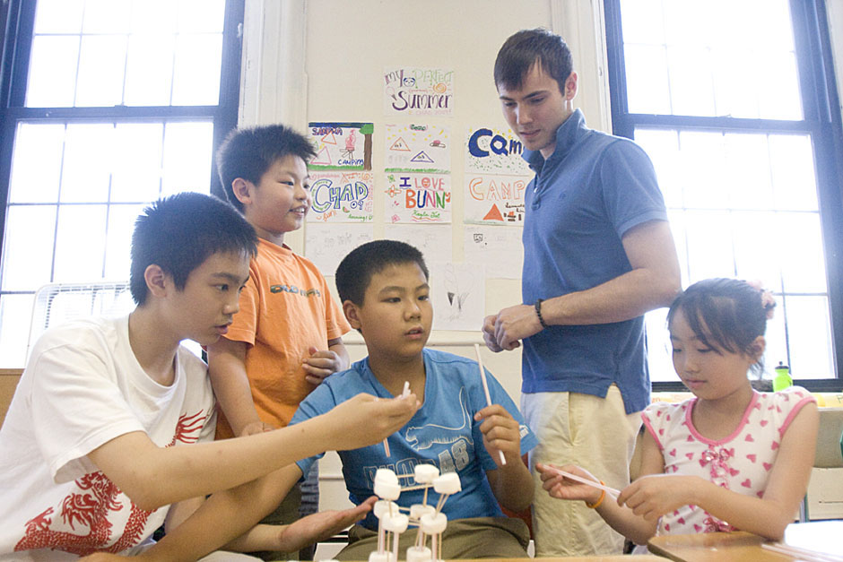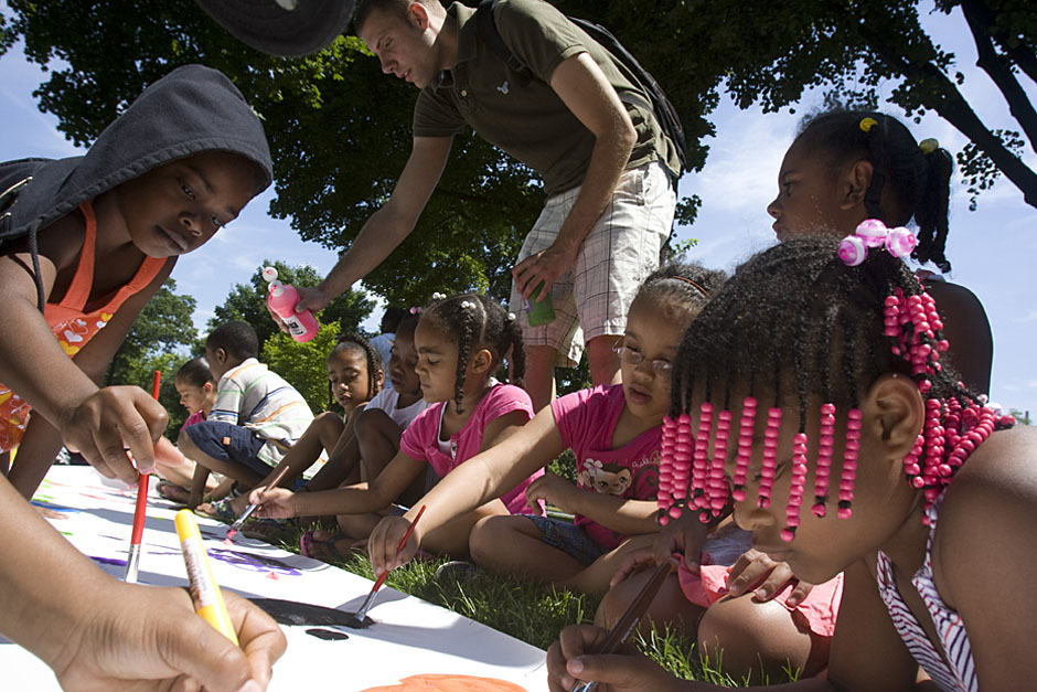 Stephanie Mitchell/Harvard Staff Photographer Harvard designer Emily Mueller De Celis (right) tours the Library Park site with children. Stephanie Mitchell/Harvard Staff Photographer Students work on a problem set during the Crimson Summer Academy. Stephanie Mitchell/Harvard Staff Photographer Boston students build marshmallow towers during Phillips Brooks House Association’s (PBHA) Chinatown Adventure summer program. Kris Snibbe/Harvard Staff Photographer Boston students make paper cup phones during PBHA’s annual Science Olympiad. Kris Snibbe/Harvard Staff Photographer Children from several different neighborhoods in Boston paint together during PBHA’s Summer Urban Program. Kris Snibbe/Harvard Staff Photographer A Boston student plays during PBHA’s Summer Urban Program. Kris Snibbe/Harvard Staff Photographer Children from Boston attend the summer camp in Chinatown run by the Phillips Brooks House Association. Stephanie Mitchell/Harvard Staff Photographer A junior counselor at a PBHA summer program assists a camper during the morning academic session. Stephanie Mitchell/Harvard Staff Photographer A Harvard Allston Summer Corps teen works with campers at Tenacity, a Boston nonprofit that teaches tennis, literacy, and life skills to kids in after-school and summer programs. Jon Chase/Harvard Staff Photographer Middle school students visit the State House during the PBHA Chinatown Adventure summer program Kris Snibbe/Harvard Staff Photographer Billy Marks ’11 speaks with a camper during a field trip to the State House. Kris Snibbe/Harvard Staff Photographer Crimson Summer Academy students take part in a science and technology course in Harvard’s Science Center. Jon Chase/Harvard Staff Photographer Crimson Scholars participate in a step class at the Malkin Athletics Center. Stephanie Mitchell/Harvard Staff Photographer Children from the Ellis Memorial visit the Arthur M. Sackler Museum for summer art activities. Stephanie Mitchell/Harvard Staff Photographer Children gather for a reading during a field trip to the Arthur M. Sackler Museum. Stephanie Mitchell/Harvard Staff Photographer A Boston student shows off his work during a visit to the Sackler Museum. Stephanie Mitchell/Harvard Staff Photographer A student reviews a book on Italy during Global Girls Day, sponsored by the Harvard Chapter of Strong Women, Strong Girls. Stephanie Mitchell/Harvard Staff Photographer Harvard undergraduates teaching at the Harvard Allston Education Portal provide science enrichment opportunities to students in the Gardner Pilot Academy’s after-school program. Kris Snibbe/Harvard Staff Photographer Cynthia Wu ’13 (left) and Erica Lin ’10 do a science demonstration for students from the Gardner Pilot Academy. Kris Snibbe/Harvard Staff Photographer Harvard University President Drew Faust and Boston Mayor Thomas Menino welcome guests to the Harvard Allston Education Portal. Justin Ide/Harvard Staff Photographer President Faust greets a student at the Harvard Allston Education Portal. Justin Ide/Harvard Staff Photographer
