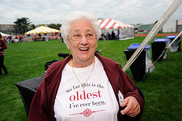 Rita DiGesse, an Allston resident who has lived in the same house for 81 years, is a familiar face at Allston-Brighton Family Football Day, a Harvard tradition more than 20 years old.