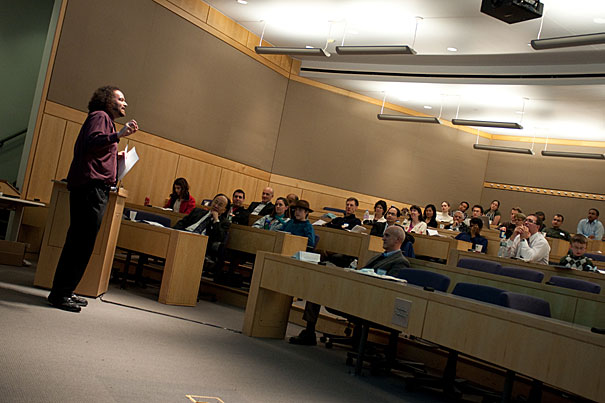 Blitzstein, whose mother traveled from Los Angeles to be in the audience, got to show off his teaching chops with a historical lecture on British logician and mathematician Alan Turing (1912-1954), who is widely regarded as the father of modern theoretical computer science. “He was one of the first computer scientists — before there were computers,” said Blitzstein.