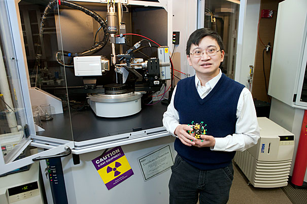 Zheng, who manages the Center for Crystallographic Studies in the Chemistry and Chemical Biology Department, is by his own admission “a little shy.” And his pronounced Chinese accent often makes for unwieldy conversation with Americans. The communication problems Zheng could frequently avoid as an isolated postdoctoral researcher came to the fore when he began teaching others how to use the center’s complex X-ray machinery.