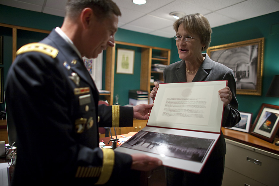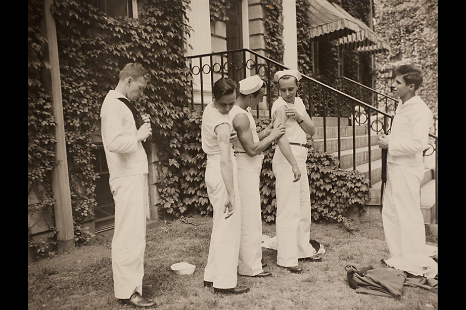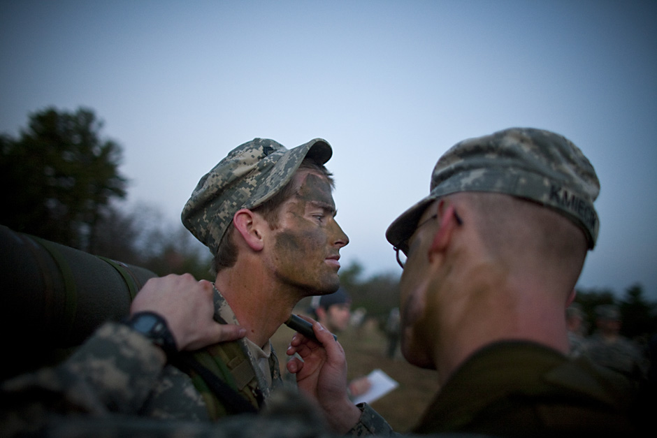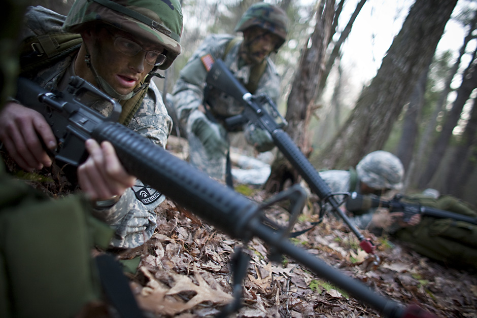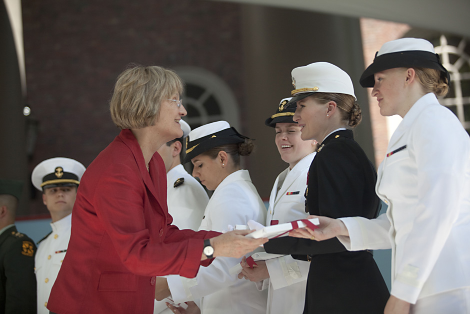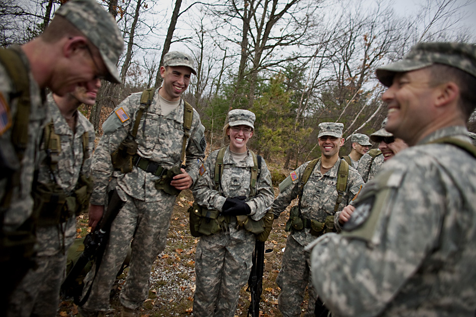 The ROTC Handbook for Harvard University in 1942. Stephanie Mitchell/Harvard Staff Photographer Harvard University Archives image. Inscription reads, “Reserve Officers Training Corps, Harvard University, Memorial Day, May 30, 1917.” Stephanie Mitchell/Harvard Staff Photographer Harvard University Archives image. Inscription reads, “Company F, Harvard ROTC 1918.” Stephanie Mitchell/Harvard Staff Photographer Harvard University Archives image. Inscription reads, “Navy, L to R, Ensigns E. Schwerin, Norma Meyer, Olga Quadland, and Edith Paulsen, Engineering 263-5 Course at Pierce Hall, October 23, 1943.” Stephanie Mitchell/Harvard Staff Photographer Copy image of historical material gathered from Harvard University Archives regarding the university’s history with ROTC. Inscription on image verso reads, Navy, L to R, Ensigns E. Schwerin, Norma Meyer, Olga Quadland, and Edith Paulsen, Engineering 263-5 Course at Pierce Hall, October 23, 1943. Stephanie Mitchell/Harvard Staff Photographer Copy image of historical material gathered from Harvard University Archives regarding the university’s history with ROTC. The image inscription reads, Bayonet Drill, Harvard ROTC at Stadium, 1917-1918. Stephanie Mitchell/Harvard Staff Photographer Harvard University Archives image. Inscription reads, “Setting up exercises, Harvard ROTC, Soldiers Field 1917-1918.” Stephanie Mitchell/Harvard Staff Photographer Harvard University Archives image. Inscription reads, “1917.” Stephanie Mitchell/Harvard Staff Photographer Copy image of historical material gathered from Harvard University Archives regarding the university’s history with ROTC. The image inscription verso reads, ROTC 1917-1918. Stephanie Mitchell/Harvard Staff Photographer Harvard University Archives image. Inscription reads, “Army, July 1943.” Stephanie Mitchell/Harvard Staff Photographer Harvard University Archives image. Inscription reads, “Mil Sci Review on steps on Widener, May 1941, WWII.” Stephanie Mitchell/Harvard Staff Photographer Copy image of historical material gathered from Harvard University Archives regarding the university’s history with ROTC. The image inscription verso reads, ROTC, Pres. Pusy, 1953. Stephanie Mitchell/Harvard Staff Photographer Copy image of historical material gathered from Harvard University Archives regarding the university’s history with ROTC. The image inscription verso reads, Reviewing ROTC parade at Harvard University are (left to right): Lt. Col Trevor H. Dupuy, Senior Professor of Military Science and Tactics of Harvard University; President Nathan M Pusey of Harvard University; Colonel Henry J.P. Harding, Chief Massachusetts Military District; Colonel Frank M. Foley, Senior Army Advisor Massachusetts Military District and Major Henry P. Walker, Professor of Military Science and Tactics at Harvard University. November 6, 1953. Credit: U.S. Army Photograph. Stephanie Mitchell/Harvard Staff Photographer Harvard University Archives image. Inscription reads, “Navy, steps of University Hall, October 9, 1943.” Stephanie Mitchell/Harvard Staff Photographer Copy image of historical material gathered from Harvard University Archives regarding the university’s history with ROTC. The image inscription verso reads, Navy ROTC, receiving tetanus inoculations, Sept. 18, 1943. Stephanie Mitchell/Harvard Staff Photographer David Boswell ’10 (left) has camo paint applied by a squad member as they ready for training early in the monring. Members of the Paul Revere Battalion Army ROTC program, including students from Harvard University, participated in the annual spring week end training exercise at Fort Devens in April 2008. Called “FTX,” it is training exercise for students held twice a year. Justin Ide/Harvard Staff Photographer David Boswell ’10 (left) comes into position during training. Members of the Paul Revere Battalion Army ROTC program, including students from Harvard University, participated in the annual spring week end training exercise at Fort Devens in April 2008. Called “FTX,” it is training exercise for students held twice a year. Justin Ide/Harvard Staff Photographer Karl Kmiecik ’10, his glasses repaired with OD Duck Tape, after a long day of training. Members of the Paul Revere Battalion Army ROTC program, including students from Harvard University, participated in the annual spring week end training exercise at Fort Devens in April 2008. Called “FTX,” it is training exercise for students held twice a year. Justin Ide/Harvard Staff Photographer Vinnie Chiappini ’09 (from left), Tom Barron ’09, Danny Biolotti ’09, Roxanne Bras ’09, Andrei Doohovskoy HKS ’09, Greg Wellman (not a Harvard student), and Lt. Col. Leo R. McGonagle prior to going to the shooting range. Members of the Paul Revere Battalion Army ROTC program, including students from Harvard University, participated in the annual spring week end training exercise at Fort Devens in April 2008. Called “FTX,” it is training exercise for students held twice a year. Justin Ide/Harvard Staff Photographer Prior to the 2010 ROTC commissioning ceremony, Shawna Sinnott ’10 and David Boswell ’10 have their photo taken in front of the John Harvard Statue. Michael G. Vickers, United States assistant secretary of defense for special operations and low intensity conflict, was the key speaker at the 2010 ceremony. Justin Ide/Harvard Staff Photographer During the 2010 ROTC commissioning ceremony, Harvard President Drew Faust gives a gift to Shawna Sinnott ’10 (black jacket) and Olivia Volkoff ’10 (white jacket). Kris Snibbe/Harvard Staff Photographer Farish A. Jenkins Jr. (left), professor of biology and curator of vertebrate paleontology, congratulates his former student, Shawna Sinnott ’10 during the 2010 ROTC commissioning ceremony at Harvard. Kris Snibbe/Harvard Staff Photographer Gen. David H. Petraeus and Harvard President Drew G. Faust share a laugh during the 2009 ROTC commissi
