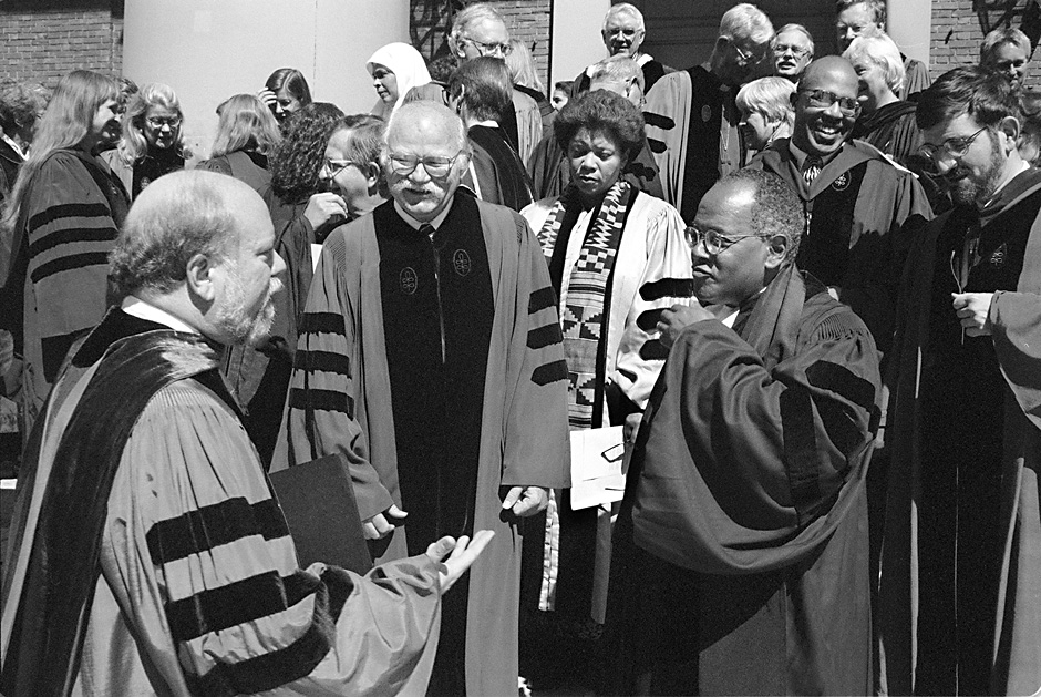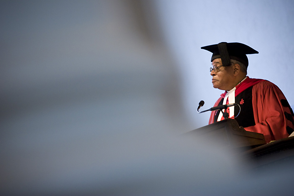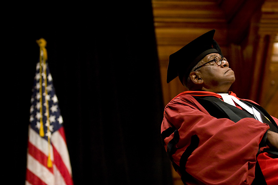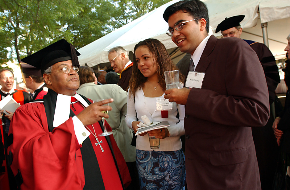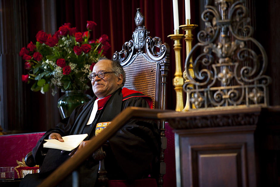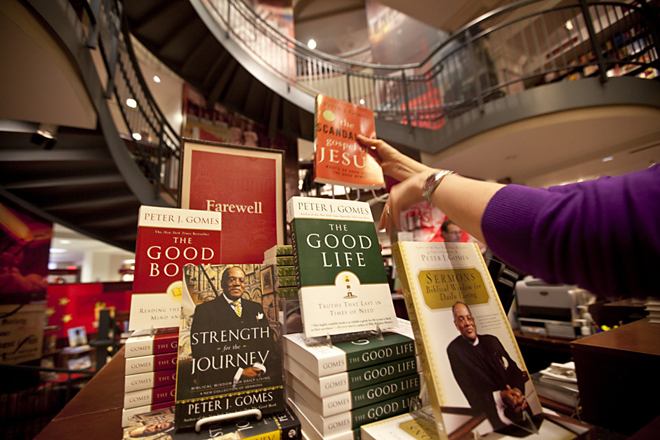 Rev. Peter J. Gomes and Matina Horner in 1983. Photo courtesy of Schlesinger Library, Radcliffe Institute, Harvard University The Rev. Peter J. Gomes (from left) is pictured with Matina Horner and Derek Bok during Harvard’s Commencement in 1973. Photo courtesy of Schlesinger Library, Radcliffe Institute, Harvard University The Rev. Peter J. Gomes speaks at a Commencement symposium in 1982. Photo by Lilian Kemp/Courtesy of Schlesinger Library, Radcliffe Institute, Harvard University Portrait of Rev. Peter J. Gomes outside of Memorial Church in 1974. Photo courtesy of Schlesinger Library, Radcliffe Institute, Harvard University Ronald F. Thiemann (from left), Harvard Divinity School dean and John Lord O’Brian Professor of Divinity, speaks with Ralph B. Potter Jr., professor of social ethics, and Peter J. Gomes, Plummer Professor of Christian Morals and Pusey Minister in the Memorial Church, at the Divinity School’s 181st convocation in 1997. Kris Snibbe/Harvard Staff Photographer Rev. Peter J. Gomes, Plummer Professor of Christian Morals and Pusey Minister in the Memorial Church, in 1996. Jon Chase/Harvard Staff Photographer Rev. Peter J. Gomes addresses the Massachusetts House of Representatives in 2000 as part of Speaker of the House Thomas M. Finneran’s Lyceum series, which brings special guests before the House to present their thoughts on a wide range of topics. After speaking eloquently and humorously about “The Common-Wealth and the Civic Imagination: Cherishing the Public Mind,” Gomes receives a book from Finneran. Rose Lincoln/Harvard Staff Photographer The Rev. Peter J. Gomes (from left), Harvard President Neil Rudenstine, University Marshal Richard Hunt, and Nelson Mandela watch as Mandela’s wife, Graça Machel, the former First Lady of Mozambique, signs Harvard’s guestbook. Mandela and Machel visited Harvard on Sept. 18, 1998 for a special convocation honoring Nelson with an honorary degree. Mike Quan/Harvard Staff Photographer Harvard President Neil L. Rudenstine presents a silver urn to the Rev. Peter J. Gomes at “A Collation on the Delta,” a celebration on Nov. 14, 1999 honoring Gomes for his 25 years as minister in the Memorial Church. Photo by Marc Halevi Rev. Peter J. Gomes (from left), Melissa Ann Eccleton, and Rohit Chopra chat during a party at Loeb House following the inauguration of Lawrence H. Summers as Harvard University president in 2001. Stephanie Mitchell/Harvard Staff Photographer In the wake of days like Sept. 11, says the Rev. Professor Peter J. Gomes, Plummer Professor of Christian Morals and Pusey Minister in the Memorial Church, “You begin to wonder what does last, what is permanent. When there is something that challenges, as this did, people then are forced to ask basic questions.” Justin Ide/Harvard Staff Photographer The Rev. Peter J. Gomes, Plummer Professor of Christian Morals and Pusey Minister in the Memorial Church, reflects a moment inside Sparks House in September 2002. Kris Snibbe/ Harvard Staff Photographer The Rev. Peter J. Gomes speaks at a ceremony in the Memorial Church during a visit to Harvard by His Holiness the Dalai Lama in 2003. Justin Ide/Harvard Staff Photographer Rev. Peter J. Gomes, Plummer Professor of Christian Morals and Pusey Minister in the Memorial Church, speaks at a peace walk at the John Harvard Statue in Harvard Yard organized by the Weatherhead Center’s Steven Bloomfield (not pictured) in 2005. Also attending are Weatherhead Center staff Ethan Kiczek (from left), Monet Uva, and Bob Threlkeld. Kris Snibbe/Harvard Staff Photographer Harvard President Lawrence Summers (left) and the Rev. Peter J. Gomes lead the Baccalaureate Service for seniors and their families in Memorial Church in 2006. Stephanie Mitchell/Harvard Staff Photographer Rev. Peter J. Gomes, Plummer Professor of Christian Morals and Pusey Minister in the Memorial Church, attends Senior Class Day exercises in Tercentenary Theatre in 2006. Kris Snibbe/Harvard Staff Photographer Rev. Peter J. Gomes, Plummer Professor of Christian Morals and Pusey Minister in the Memorial Church, speaks before a performance by cellist Yo-Yo Ma ’76 at a benefit concert for the 75th anniversary of the Memorial Church in 2007. Kris Snibbe/Harvard Staff Photographer Drew Faust (left) is escorted by Rev. Peter J. Gomes, the Plummer Professor of Christian Morals and Pusey Minister in the Memorial Church, during her installation as the 28th president of Harvard University in 2007. Ceremonies began with a service of thanksgiving at Memorial Church. Rose Lincoln/Harvard Staff Photographer The Rev. Peter J. Gomes welcomes seniors to the Baccalaureate Service at the Memorial Church in 2008. Justin Ide/Harvard Staff Photographer The Rev. Peter J. Gomes presides over the Senior Chapel service in the Memorial Church during Morning Exercises at Commencement in 2008. Stephanie Mitchell/Harvard Staff Photographer Rev. Peter J. Gomes walks down the aisle of graduates at Harvard’s 357th Commencement in 2008. Stephanie Mitchell/Harvard Staff Photographer Harvard President Drew Faust chats with Rev. Peter J. Gomes in the Memorial Church prior to the arrival of former Vice President Al Gore ’69. Gore and Faust were featured speakers at Harvard’s University-wide “Sustainability Week” in October 2008. Justin Ide/Harvard Staff Photographer Rev. Peter J. Gomes attends a ceremony in Sanders Theatre honoring Massachusetts Sen. Edward M. Kennedy with an honorary degree in December 2008. Stephanie Mitchell/Harvard Staff Photographer Harvard Professors Henry Louis “Skip” Gates Jr. (left) and Rev. Peter J. Gomes attend a Loeb House reception following the special convocation for Sen. Edward M. Kennedy in 2008. Justin Ide/Harvard Staff Photographer September 2009. Rev. Peter J. Gomes, Plummer Professor of Christian Morals and Pusey Minister in the Memorial Church, hosts Wednesday Tea, a weekly tradition during term inside Sparks House at Harvard University. Kris Snibb