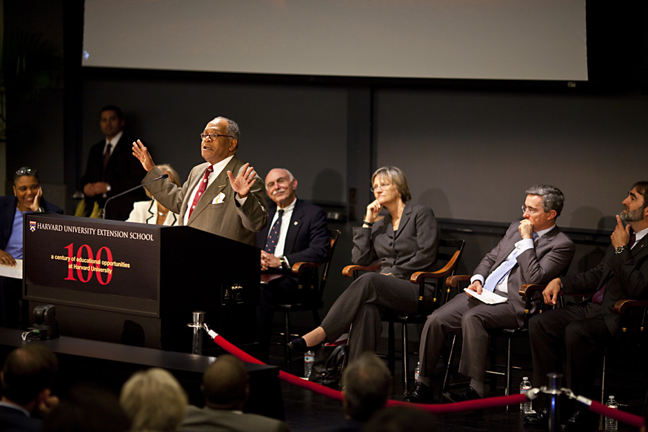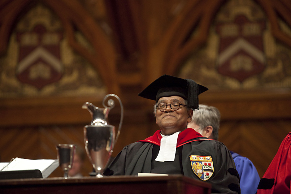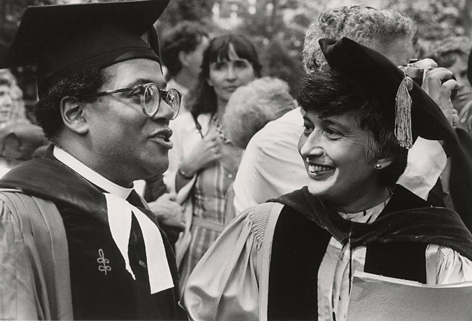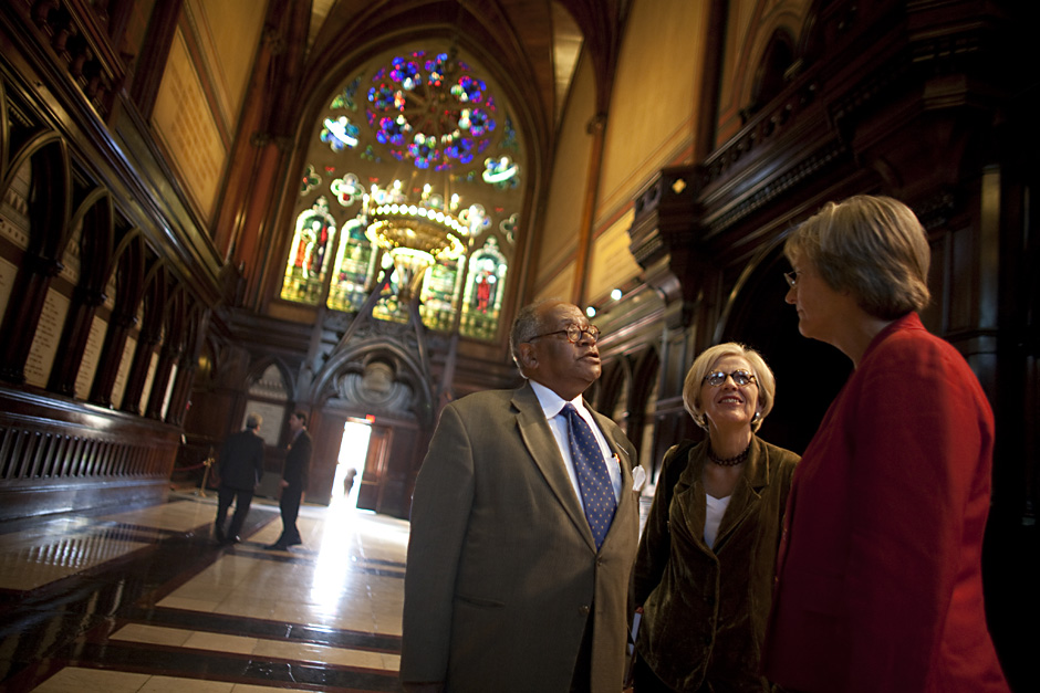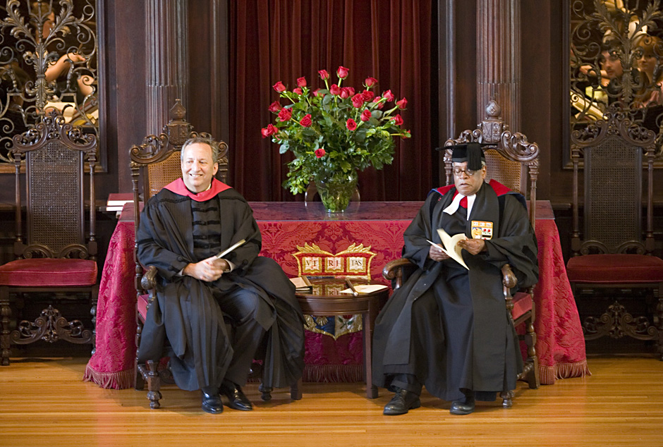 Rev. Peter J. Gomes and Matina Horner in 1983. Photo courtesy of Schlesinger Library, Radcliffe Institute, Harvard University The Rev. Peter J. Gomes (from left) is pictured with Matina Horner and Derek Bok during Harvard’s Commencement in 1973. Photo courtesy of Schlesinger Library, Radcliffe Institute, Harvard University The Rev. Peter J. Gomes speaks at a Commencement symposium in 1982. Photo by Lilian Kemp/Courtesy of Schlesinger Library, Radcliffe Institute, Harvard University Portrait of Rev. Peter J. Gomes outside of Memorial Church in 1974. Photo courtesy of Schlesinger Library, Radcliffe Institute, Harvard University Ronald F. Thiemann (from left), Harvard Divinity School dean and John Lord O’Brian Professor of Divinity, speaks with Ralph B. Potter Jr., professor of social ethics, and Peter J. Gomes, Plummer Professor of Christian Morals and Pusey Minister in the Memorial Church, at the Divinity School’s 181st convocation in 1997. Kris Snibbe/Harvard Staff Photographer Rev. Peter J. Gomes, Plummer Professor of Christian Morals and Pusey Minister in the Memorial Church, in 1996. Jon Chase/Harvard Staff Photographer Rev. Peter J. Gomes addresses the Massachusetts House of Representatives in 2000 as part of Speaker of the House Thomas M. Finneran’s Lyceum series, which brings special guests before the House to present their thoughts on a wide range of topics. After speaking eloquently and humorously about “The Common-Wealth and the Civic Imagination: Cherishing the Public Mind,” Gomes receives a book from Finneran. Rose Lincoln/Harvard Staff Photographer The Rev. Peter J. Gomes (from left), Harvard President Neil Rudenstine, University Marshal Richard Hunt, and Nelson Mandela watch as Mandela’s wife, Graça Machel, the former First Lady of Mozambique, signs Harvard’s guestbook. Mandela and Machel visited Harvard on Sept. 18, 1998 for a special convocation honoring Nelson with an honorary degree. Mike Quan/Harvard Staff Photographer Harvard President Neil L. Rudenstine presents a silver urn to the Rev. Peter J. Gomes at “A Collation on the Delta,” a celebration on Nov. 14, 1999 honoring Gomes for his 25 years as minister in the Memorial Church. Photo by Marc Halevi Rev. Peter J. Gomes (from left), Melissa Ann Eccleton, and Rohit Chopra chat during a party at Loeb House following the inauguration of Lawrence H. Summers as Harvard University president in 2001. Stephanie Mitchell/Harvard Staff Photographer In the wake of days like Sept. 11, says the Rev. Professor Peter J. Gomes, Plummer Professor of Christian Morals and Pusey Minister in the Memorial Church, “You begin to wonder what does last, what is permanent. When there is something that challenges, as this did, people then are forced to ask basic questions.” Justin Ide/Harvard Staff Photographer The Rev. Peter J. Gomes, Plummer Professor of Christian Morals and Pusey Minister in the Memorial Church, reflects a moment inside Sparks House in September 2002. Kris Snibbe/ Harvard Staff Photographer The Rev. Peter J. Gomes speaks at a ceremony in the Memorial Church during a visit to Harvard by His Holiness the Dalai Lama in 2003. Justin Ide/Harvard Staff Photographer Rev. Peter J. Gomes, Plummer Professor of Christian Morals and Pusey Minister in the Memorial Church, speaks at a peace walk at the John Harvard Statue in Harvard Yard organized by the Weatherhead Center’s Steven Bloomfield (not pictured) in 2005. Also attending are Weatherhead Center staff Ethan Kiczek (from left), Monet Uva, and Bob Threlkeld. Kris Snibbe/Harvard Staff Photographer Harvard President Lawrence Summers (left) and the Rev. Peter J. Gomes lead the Baccalaureate Service for seniors and their families in Memorial Church in 2006. Stephanie Mitchell/Harvard Staff Photographer Rev. Peter J. Gomes, Plummer Professor of Christian Morals and Pusey Minister in the Memorial Church, attends Senior Class Day exercises in Tercentenary Theatre in 2006. Kris Snibbe/Harvard Staff Photographer Rev. Peter J. Gomes, Plummer Professor of Christian Morals and Pusey Minister in the Memorial Church, speaks before a performance by cellist Yo-Yo Ma ’76 at a benefit concert for the 75th anniversary of the Memorial Church in 2007. Kris Snibbe/Harvard Staff Photographer Drew Faust (left) is escorted by Rev. Peter J. Gomes, the Plummer Professor of Christian Morals and Pusey Minister in the Memorial Church, during her installation as the 28th president of Harvard University in 2007. Ceremonies began with a service of thanksgiving at Memorial Church. Rose Lincoln/Harvard Staff Photographer The Rev. Peter J. Gomes welcomes seniors to the Baccalaureate Service at the Memorial Church in 2008. Justin Ide/Harvard Staff Photographer The Rev. Peter J. Gomes presides over the Senior Chapel service in the Memorial Church during Morning Exercises at Commencement in 2008. Stephanie Mitchell/Harvard Staff Photographer Rev. Peter J. Gomes walks down the aisle of graduates at Harvard’s 357th Commencement in 2008. Stephanie Mitchell/Harvard Staff Photographer Harvard President Drew Faust chats with Rev. Peter J. Gomes in the Memorial Church prior to the arrival of former Vice President Al Gore ’69. Gore and Faust were featured speakers at Harvard’s University-wide “Sustainability Week” in October 2008. Justin Ide/Harvard Staff Photographer Rev. Peter J. Gomes attends a ceremony in Sanders Theatre honoring Massachusetts Sen. Edward M. Kennedy with an honorary degree in December 2008. Stephanie Mitchell/Harvard Staff Photographer Harvard Professors Henry Louis “Skip” Gates Jr. (left) and Rev. Peter J. Gomes attend a Loeb House reception following the special convocation for Sen. Edward M. Kennedy in 2008. Justin Ide/Harvard Staff Photographer September 2009. Rev. Peter J. Gomes, Plummer Professor of Christian Morals and Pusey Minister in the Memorial Church, hosts Wednesday Tea, a weekly tradition during term inside Sparks House at Harvard University. Kris Snibb