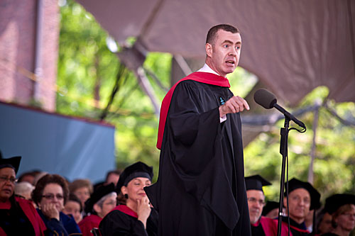 Among the maxims were “Think small, act large,” “Jettison your toxic regrets,” and “Live in the present … the only tense that truly matters.” Meyer urged graduates to embrace “the immensity of life” and reminded them they are leaving Harvard “as naked as Adam and Eve.”
