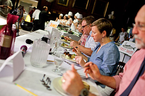 In addition to Breslin, Cambridge foodie favorites Susan Regis, chef at Harvard Square institution UpStairs on the Square, and Paul O’Connell, chef and owner of the French-Cuban bistro Chez Henri, lent culinary credibility to the judges’ table. Lisa Laskin, Harvard Summer School associate dean for academic affairs, and Summer School Dean Donald Pfister, Asa Gray Professor of Systemic Botany, rounded out the lineup of taste testers.