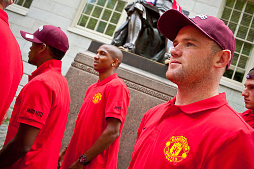 The Red Devils descended on Harvard Tuesday (July 12) for a date with some lucky schoolchildren from the Boston neighborhoods of Allston and Brighton, and with John Harvard.