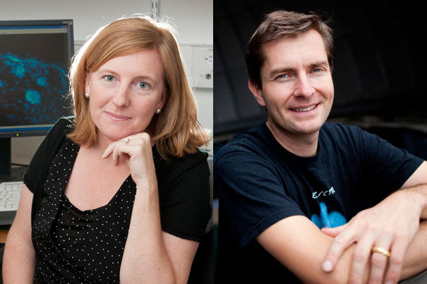 “David Charbonneau and Hopi Hoekstra are both prime examples of what makes Harvard, and the Faculty of Arts and Sciences [FAS], exceptional places for students,” said FAS Dean Michael D. Smith. Hoekstra (left) and Charbonneau are recipients of the inaugural Fannie Cox Prize for Excellence in Science Teaching.