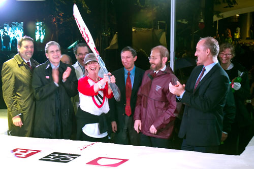 Faust, in the spirit of the moment, said, “By the authority vested in me, let’s cut and serve the cake.” The crowd — still under a steady drizzle — roared.