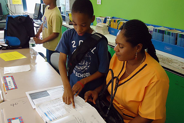At back-to-school nights, Boston Public School teachers introduced Harvard Achievement Support Initiative homework materials and parents heard firsthand how they could help supplement learning at home.