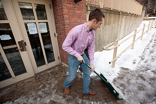 Tankard is one of more than two dozen Harvard undergraduates who returned to campus early to do service at the only student-run homeless shelter in the country. She and her fellow HSHS volunteers spent at least 25 hours per week during January providing food and short-term lodging for the 25 to 29 guests who visited the shelter each night. Conor Walsh ’12, an administrative director of HSHS, says that Winter Break is an opportunity for many students to help the needy, to see what the shelter does, and to get a better understanding of the problem of homelessness in the Boston area.
