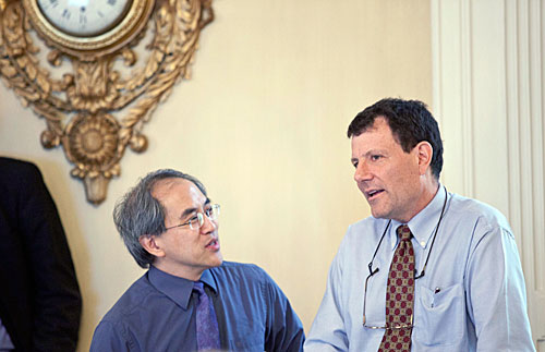 Overseers also reach out to the Harvard community and the greater community beyond. For instance, Overseer Walter Isaacson, head of the Aspen Institute and biographer of Albert Einstein, Benjamin Franklin, and Steve Jobs, recently co-led a January “Wintersession” offering for undergraduate writers, for which one of the guest speakers was Overseer Anne Fadiman, an author and Francis Writer-in-Residence at Yale University. Fadiman and Isaacson are also taking part in the Boston and Cambridge library lecture series created to mark Harvard’s 375th anniversary, the John Harvard Book Celebration, which will also include two Overseer colleagues, Linda Greenhouse, former Supreme Court correspondent for the New York Times, and Nicholas Kristof, a Times columnist.