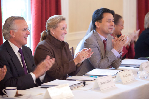 Being an Overseer demands both time and travel. Five times a year, including four weekends and Commencement week, Overseers gather in Cambridge. Additional trips are needed to attend visiting committee meetings. Time is required to prepare reports, read background material, participate in conference calls, and pursue other activities. On a typical Overseers weekend, the board’s executive committee meets Saturday afternoon, and the full board then has dinner and participates in a panel discussion on a topic of importance to the University. Sunday sees more committee meetings in the morning, followed by a plenary session at which Corporation members are welcome. These sessions touch on topics that range from innovation in teaching to interfaculty collaboration to campaign planning to international strategy. Joint Overseer-Corporation committees meet Sunday after the plenary session.