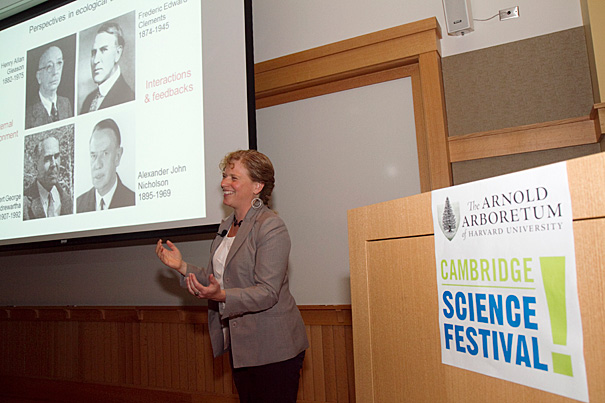 Harvard Forest Senior Ecologist Elizabeth Crone outlined her research on the reproduction of sugar maples and pollination strategies at the Arnold Arboretum during the Cambridge Science Festival.