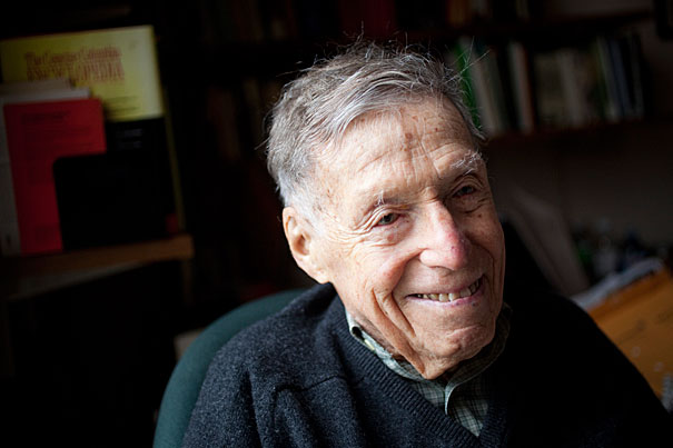 To win the Centennial Medal in his 100th year seems just right for a man who “literally embodies the American studies century,” says Professor Werner Sollors of his longtime friend and colleague, the literary historian Daniel Aaron, Ph.D. ’43 (pictured), and the Victor S. Thomas Professor of English and American Literature Emeritus at Harvard University.