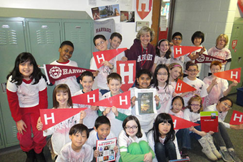 “We took pictures of everyone dressed in crimson and white, and sent a [child’s] handwritten letter and picture of my class to each dean at Harvard,” says McAvoy. “Several deans offered us grad school students to be pen pals, but then I received an email from Dean Michael Shinagel — he adopted us — and [he] has been our pen pal ever since. When we first Googled him, the children were so excited to see photos and information about him on the Internet. And I was quite impressed that someone as important as he is would do something like this for a group of kids he’d never met!”