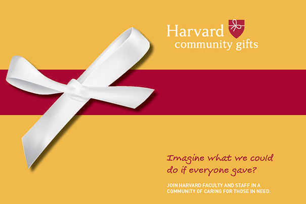 The Harvard Community Gifts campaign launches today. Faculty and staff can choose to donate by payroll deduction by Dec. 7, or may elect to give by check or credit card through Jan. 15. Harvard has established a user-friendly website where individuals can select their charity and donation amount.