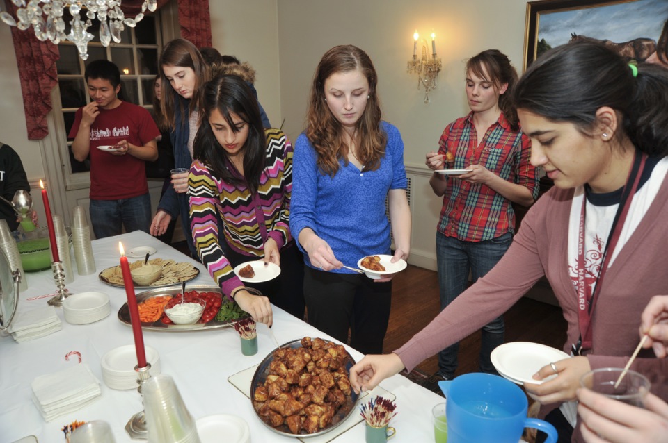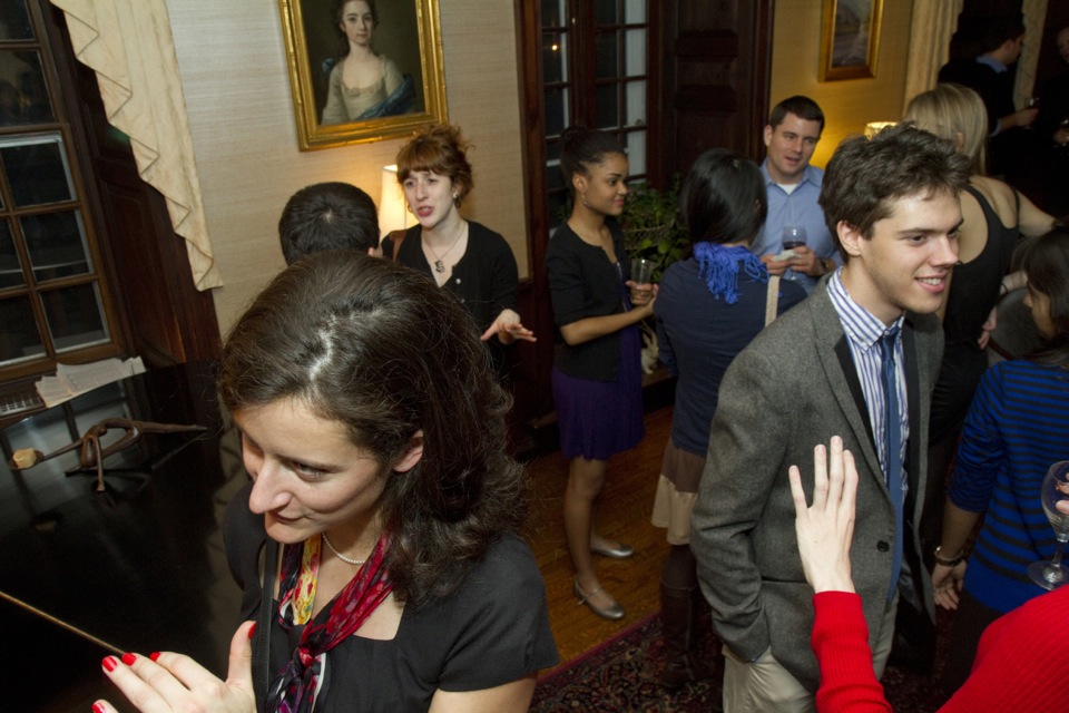 Established in 1930, Leverett House is the largest residential House at Harvard. Leverett’s social calendar was overflowing in mid-December with a series of events that included a Master’s open house, a student-faculty reception and dinner, and a talent show. Hosted by Masters Howard and Ann Georgi, the open house featured the famed Leverett monkey bread (cinnamon-flavored bread chunks baked to a warm golden-brown hue), the making of foil snowflakes, gingerbread decorating, and impromptu caroling around the piano.
