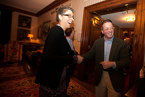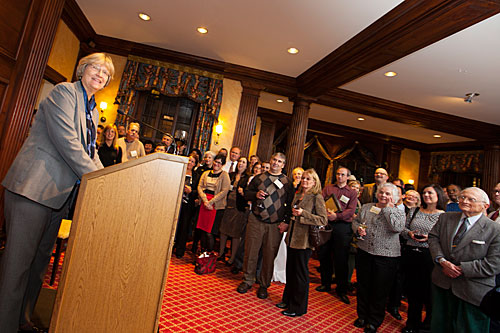 While Faust was quick to praise all the honorees’ loyalty to the University, one guest in particular was loyal to Faust herself. George White was working in human resources at the Radcliffe Institute for Advanced Study when Faust, then at Radcliffe, was named president in 2007. He traded 9-to-5 office life to become the manager of Elmwood, the Harvard-owned residence of the president and her husband.