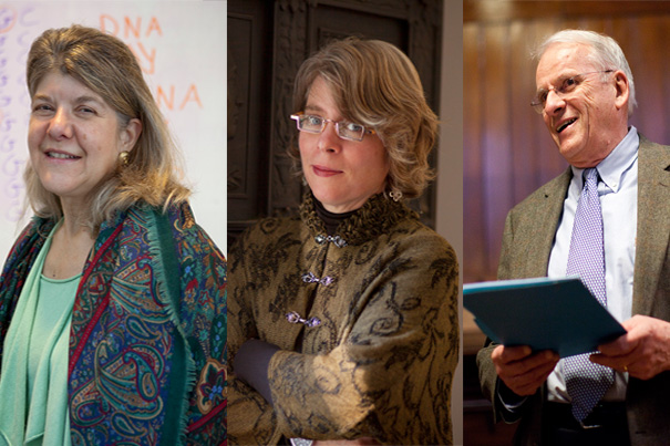 Professors Jennifer Hochschild (from left), Jill Lepore, and John Dowling will be featured in a series of book talks, which Hochschild kicks off Wednesday at 6 p.m. in the Widener Library rotunda.
