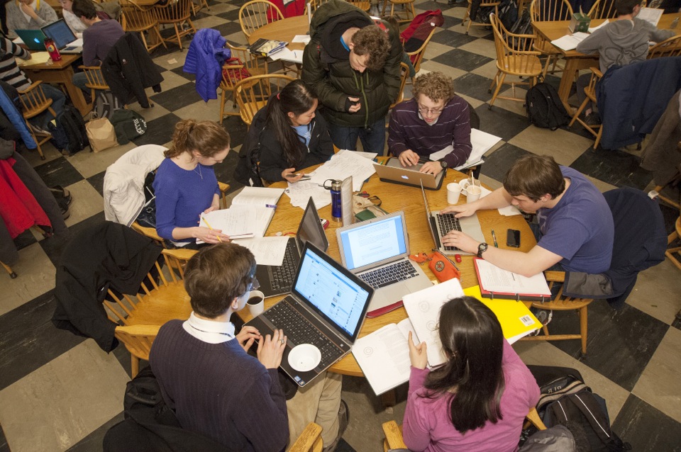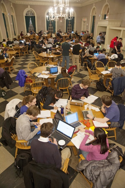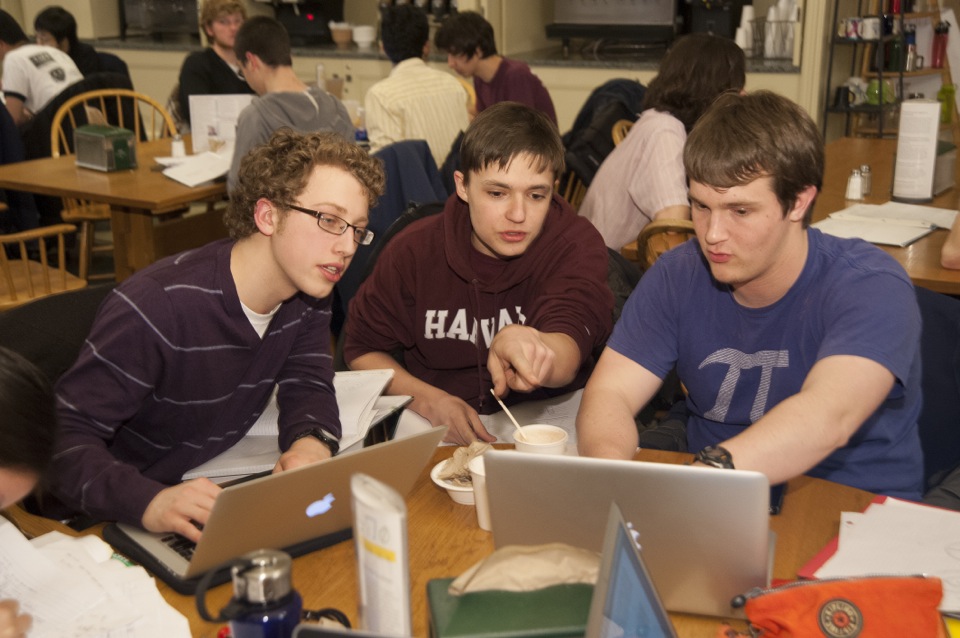 Soon, professors started sending their teaching fellows to Physics Nights, and even came themselves. The advent of Brain Break, during which students study late with food near at hand, reinforced the practice. Now, Physics Night is an institution that fills the dining hall with laptops and animated dialogue about physics — except, of course, when the talk is on the court at the MAC, where Leverett basketball players talk of “give-and-go” or “cutting to the basket” as they take a study break.