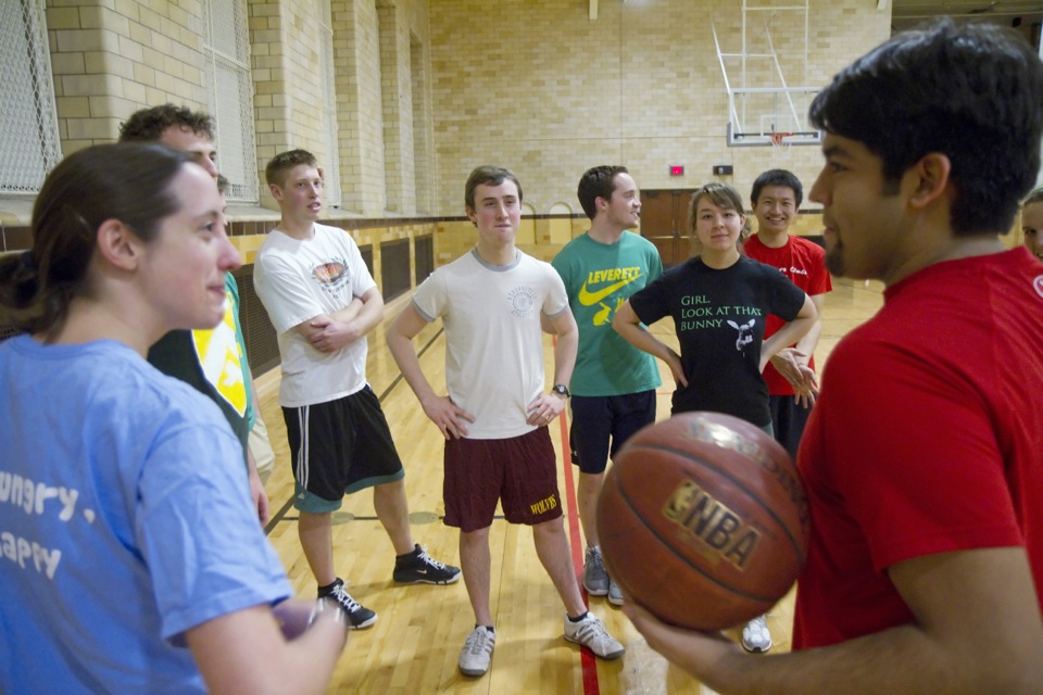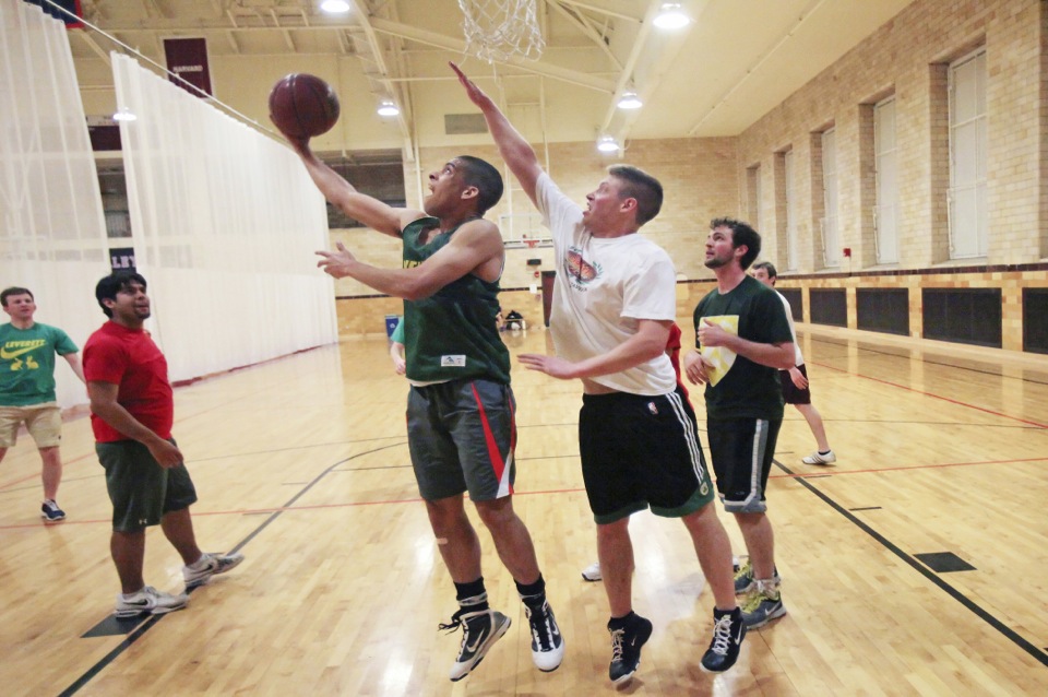 At first glance, physics and basketball seem worlds apart, but at Harvard they’re connected in more ways than one. Take Physics Night at Leverett House, for example, and an intrasquad basketball game at the Malkin Athletic Center (MAC) — two activities that develop both mind and body, nurturing the individual and the community simultaneously.