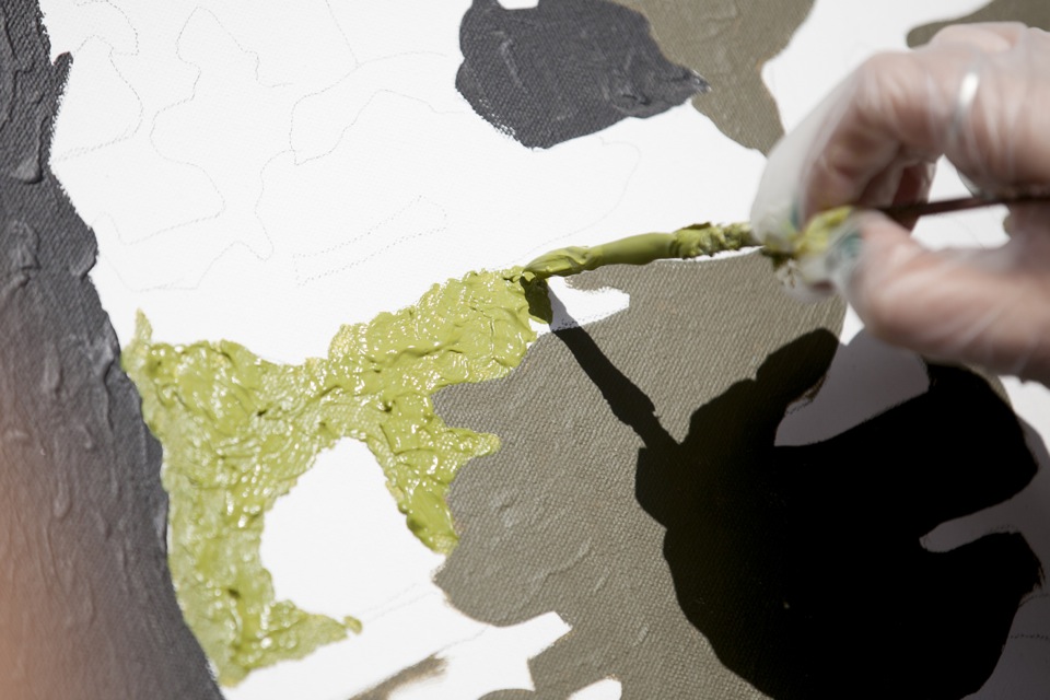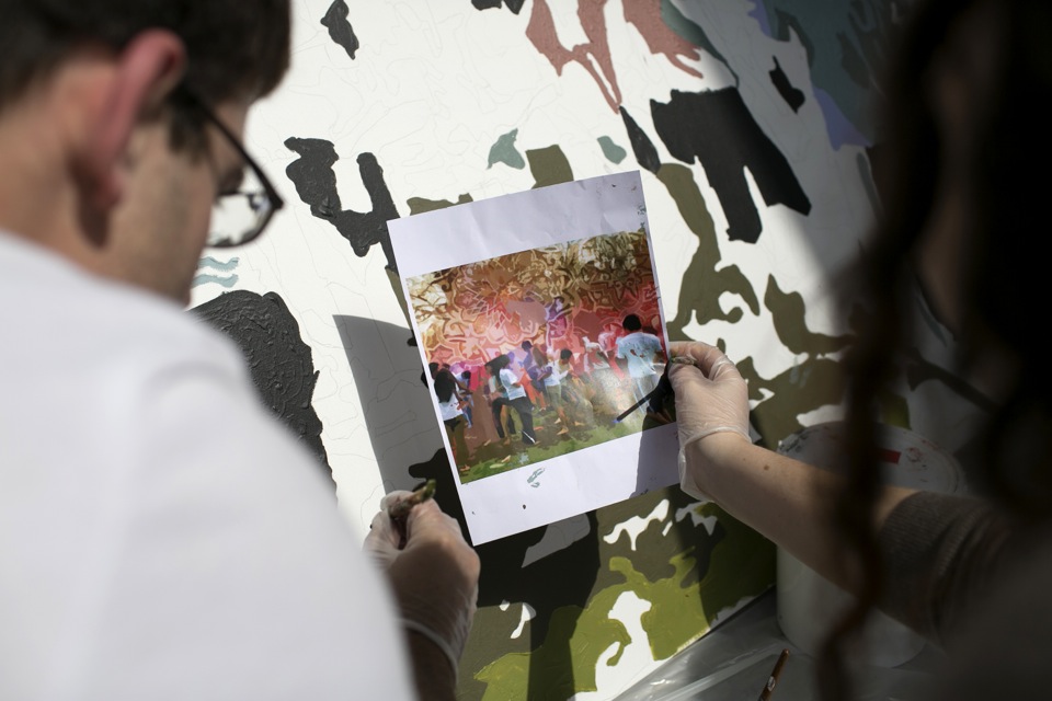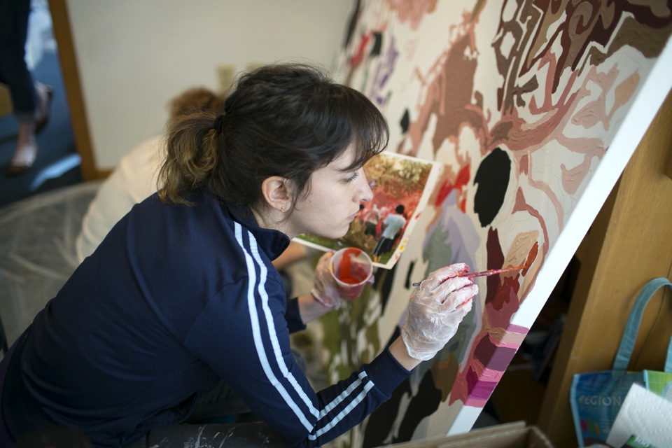 “Come paint!” Diana Gilon encouraged almost every person who passed her mural in progress, attracting a steady flow of participants.