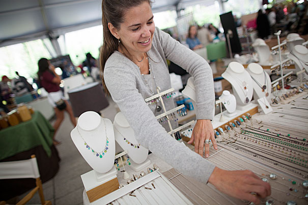 Surrounded by unusual necklaces built from the natural stones that inspired them, Erin Nelson of Freebird Designs of Arlington said, “This is my chance to connect with people in Harvard Square.”