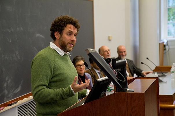 In addition to Harris, the Harry Austryn Wolfson Professor of Jewish Studies, the panel included professors Stephanie Sandler, Joshua Greene, Rakesh Khurana, and interim Dean of the College Donald Pfister.