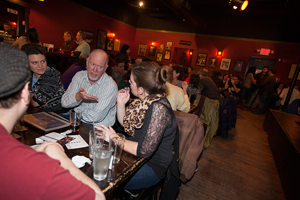 Science left the lab Monday night and found a warm welcome — along with some frothy pints — in the backroom at The Burren, an Irish pub in Somerville.