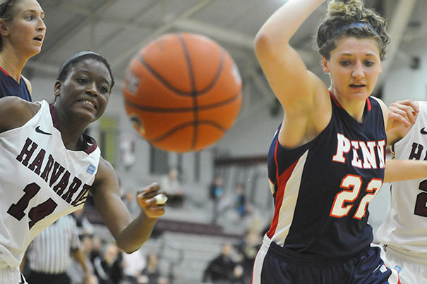 Harvard lost to Penn 63-50 on Friday. Temi Fagbenle ’15 (left, photo 1) notched a double-double and Christine Clark ’14 (left, photo 2) eclipsed the 1,600-point plateau. Harvard (photo 3) plays Princeton tonight.