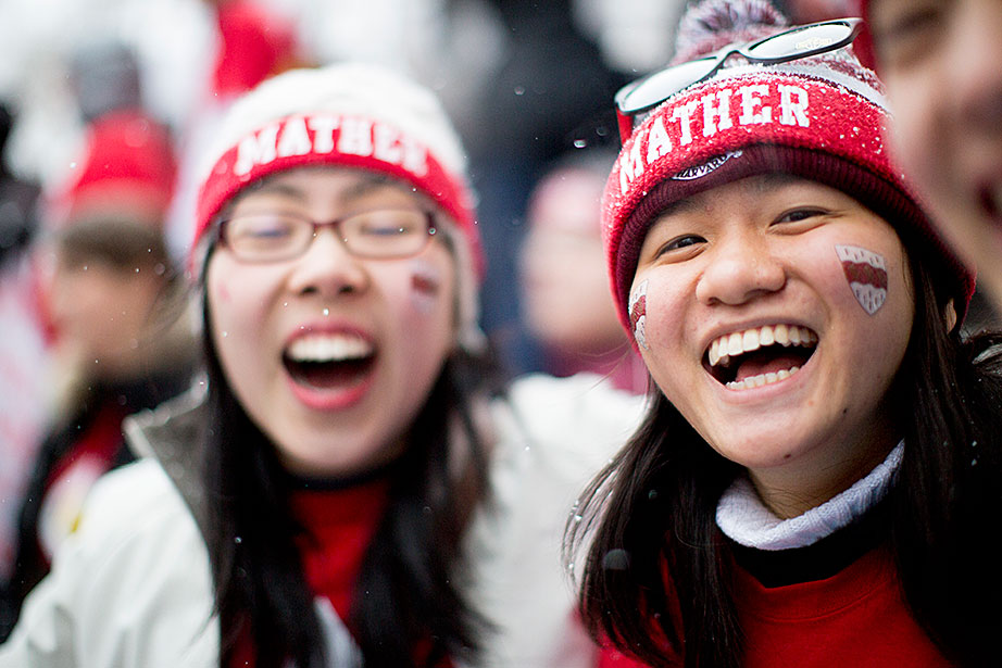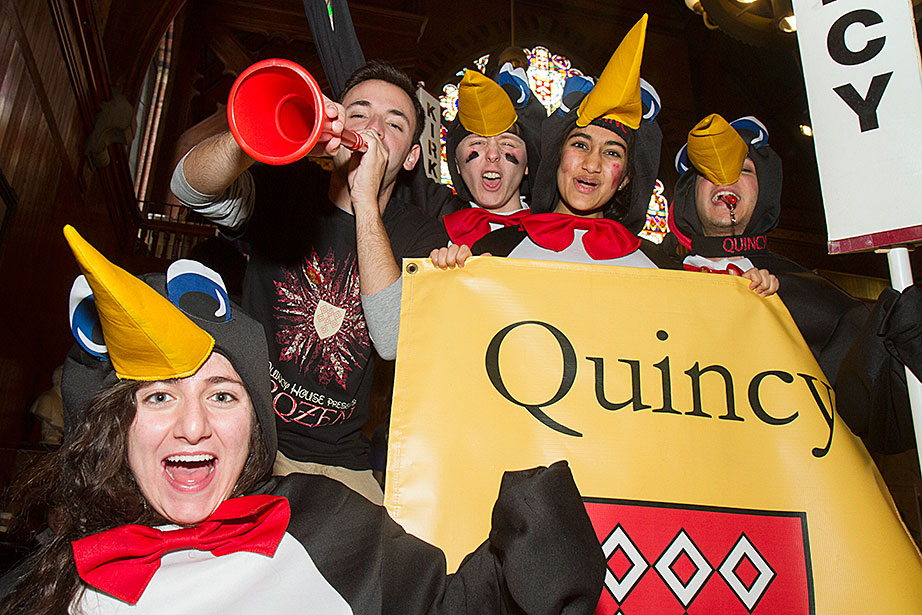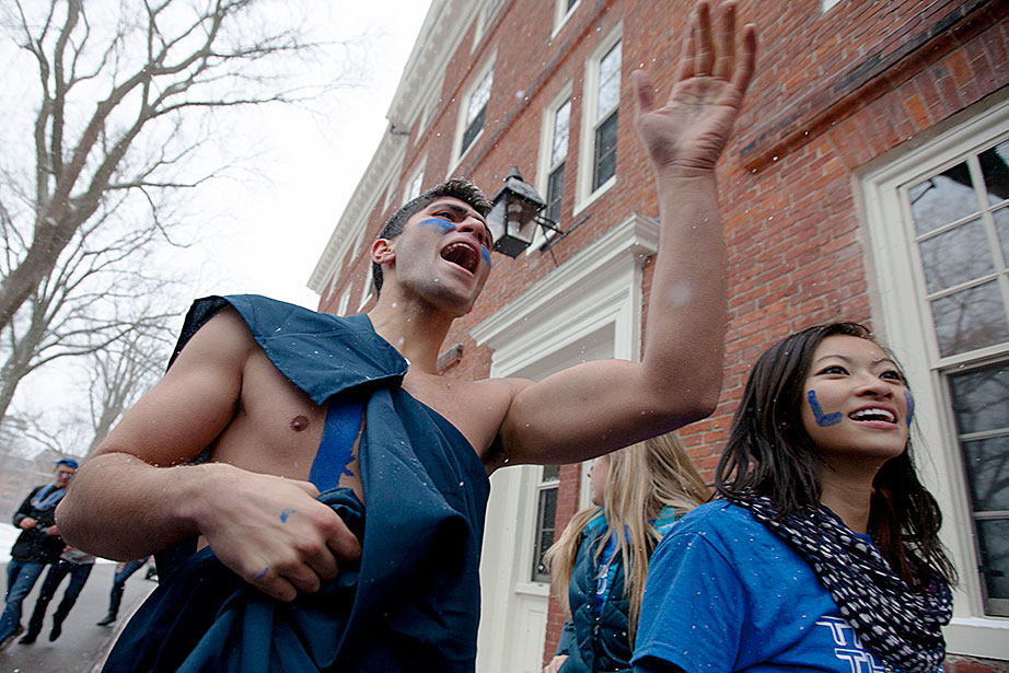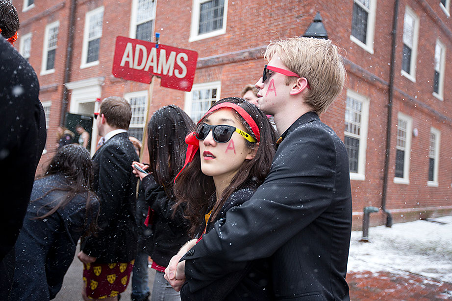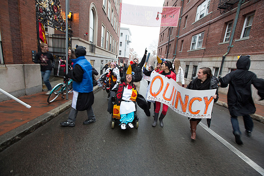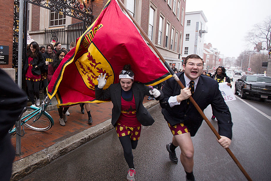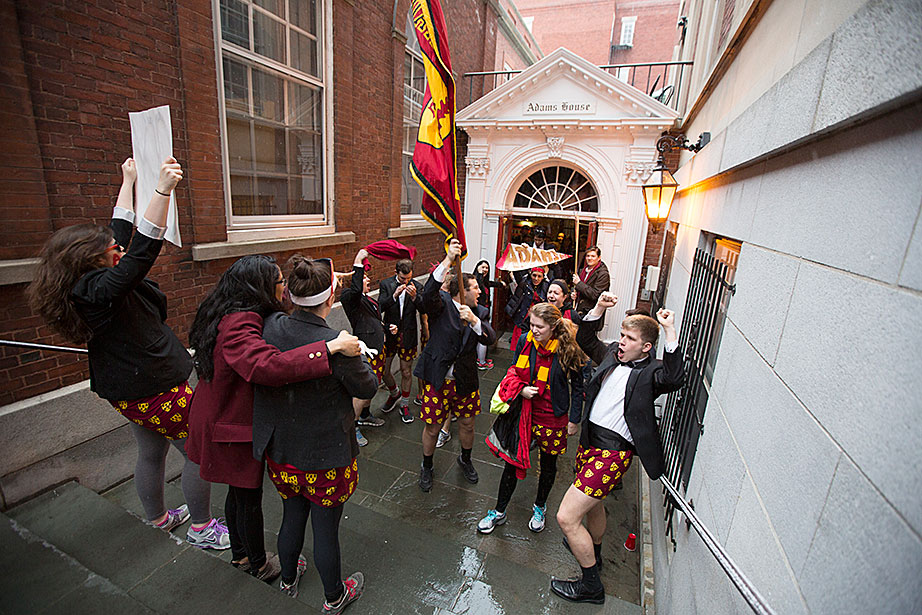 Housing Day intensity begins at Adams House with this spirited charge on the Yard. Rose Lincoln/Harvard Staff Photographer