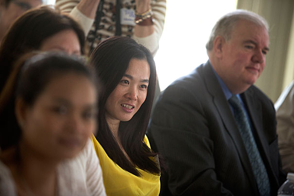 State Rep. Kevin Honan (right, photo 1) attended the Allston-Brighton Legislators’ Breakfast honoring nine area residents, including Pei Kuang (in yellow). City Councilor Mark Ciommo (seated left, photo 2) and State Sen. Sal DiDomenico also spoke at the event, which was held at the Charlesview Community Center. The center’s computer lab (photo 3) is where area residents learn basic computer skills.