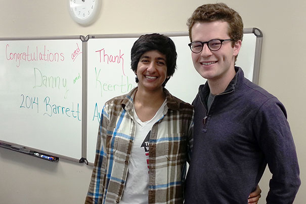 The Bureau of Study Counsel (BSC) awarded Keerthi Reddy ’14 and Daniel Wilson ’14 the Joseph L. Barrett Award on May 5. The award commemorates Joseph L. Barrett ’73, and honors exceptional students who generously give their time to support their peers in developing more meaningful college experiences.