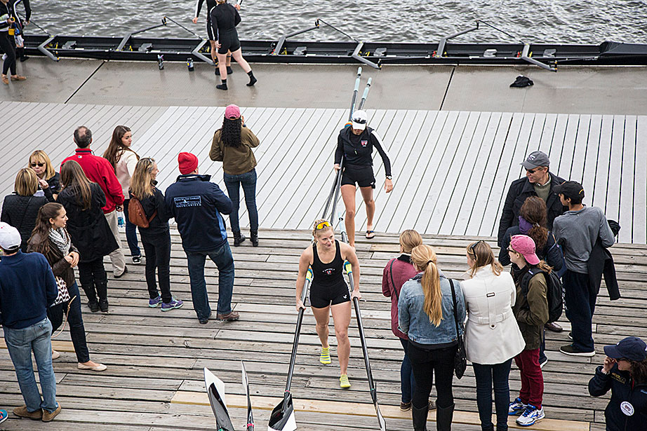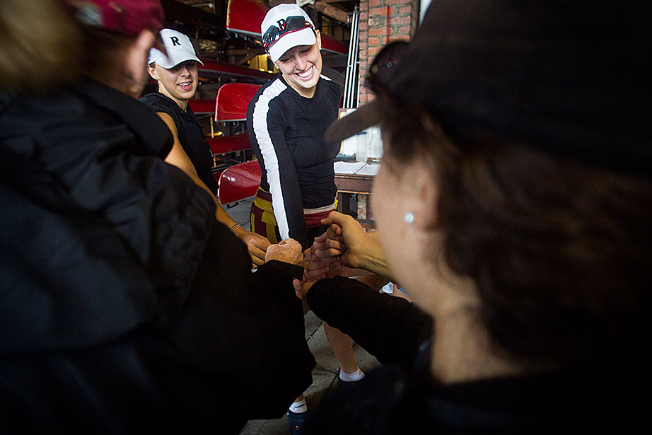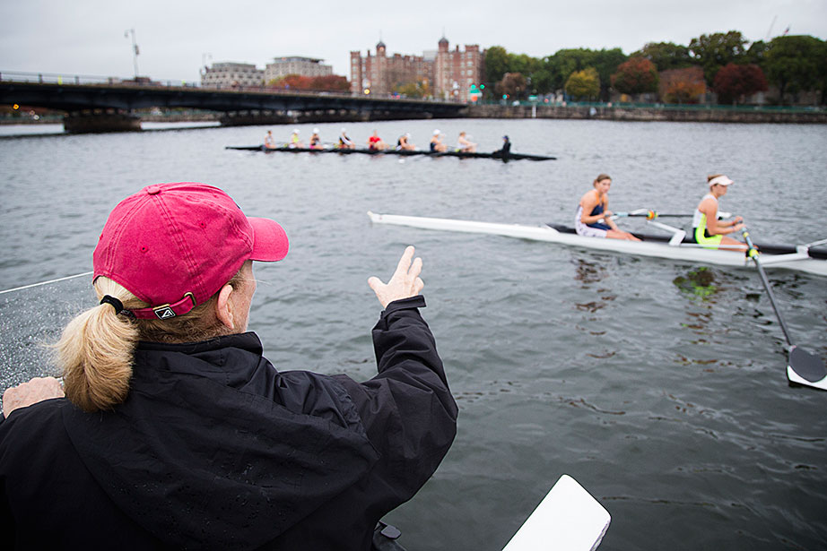 “I remind them of their goals a lot,” said Jenny Wong ’15, a coxswain. “Even though I’m not rowing, I’m just as much in the boats as everyone else. I’m like the in-boat coach, leading the boat and giving motivation.” As to her style of coaching, she said, “I would definitely say I’m the tough one. You have to be. Rowers, they want to be pushed, they want to accomplish the best they can. And when you’re really tired, your own brain makes all sorts of excuses for you. You need someone to make you stick to you guns.”
