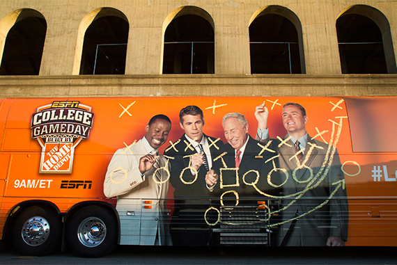 ESPN set up on Thursday for its Harvard-Yale football GameDay coverage, which will be a live broadcast from Dillon Quad before the game.