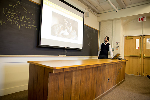 “The topics we’re covering with this course are pretty standard sexual-selection modules, so if you were in a behavioral-ecology course, it would be divided into two halves,” he continued. “There’s utilitarian selection on how you survive and don’t get eaten by predators, and then there’s sexual selection, which is all the ways in which you increase your fitness by finding partners and convincing them to mate with you.”