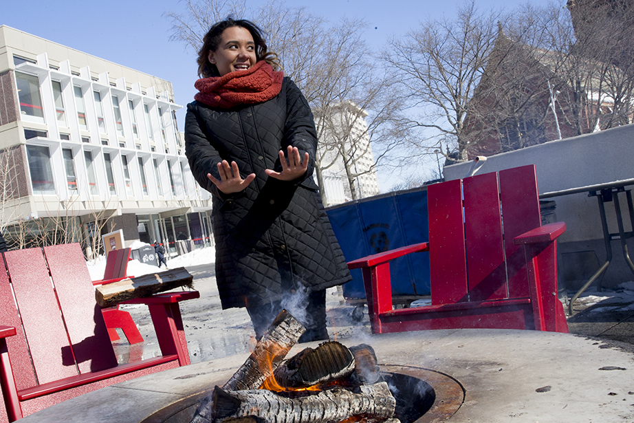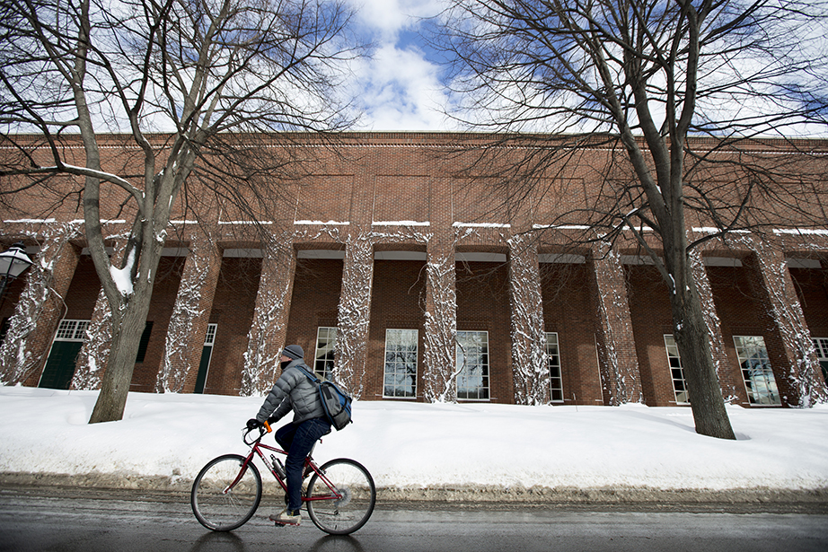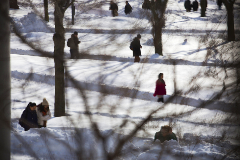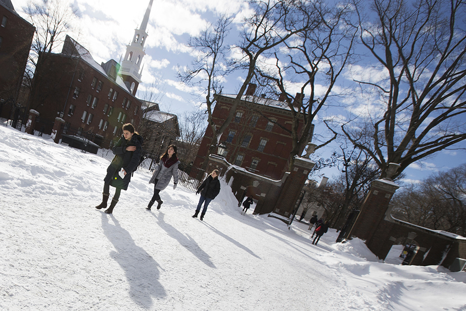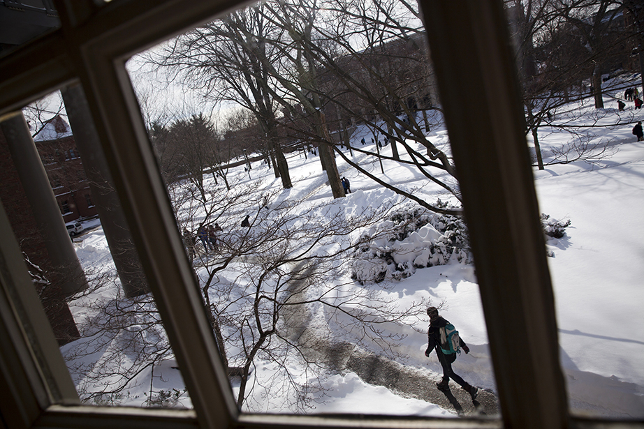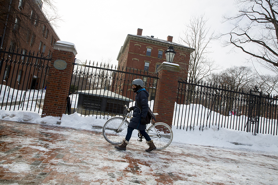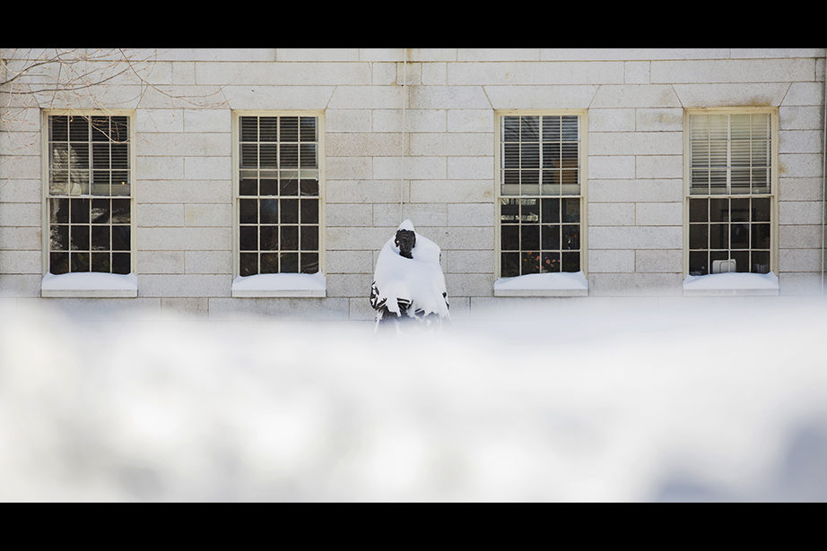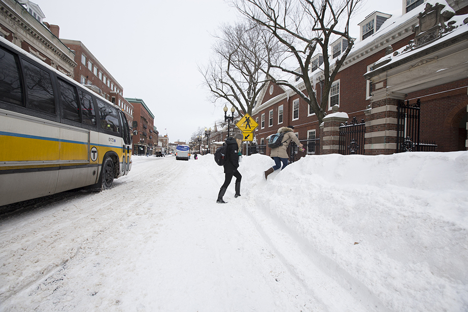 Harvard University on a winter day. Snow covers the John Harvard Statue in Harvard Yard, where it’s piled high. Stephanie Mitchell/Harvard Staff Photographer Students walk through the cleared paths in Harvard Yard. Stephanie Mitchell/Harvard Staff Photographer Students parade across Science Center Plaza. Rose Lincoln/Harvard Staff Photographer Facilities maintenance crews battle conditions after the blizzard. Rose Lincoln/Harvard Staff Photographer Icicles hang from the windowsills of the Memorial Church. Rose Lincoln/Harvard Staff Photographer Crews coat the paths around the Yard with salt. Rose Lincoln/Harvard Staff Photographer Harvard University staffer John Carroll heads to lunch after clearing snow near Holden Chapel to make room for the next blizzard, expected over the weekend. Rose Lincoln/Harvard Staff Photographer A bicyclist passes by Harvard Business School. Rose Lincoln/Harvard Staff Photographer Students walk by Leverett House. Kris Snibbe/Harvard Staff Photographer Snow and icicles cover Wadsworth Hall in Harvard Yard. Stephanie Mitchell/Harvard Staff Photographer Students scale large snow piles along Massachusetts Avenue. Rose Lincoln/Harvard Staff Photographer Students walk to class in the snow of Harvard Yard. Stephanie Mitchell/Harvard Staff Photographer Harvard bus driver Raymond Quitumba Jr. jokes with Yan Bai ’15 that she should wave her arms instead of chasing the bus. Rose Lincoln/Harvard Staff Photographer Cabot and Pforzheimer Houses on Radcliffe Quadrangle the day after the blizzard. Rose Lincoln/Harvard Staff Photographer Harvard University student Gigi Estevez warms her hands by one of three new fire pits in Science Center Plaza. Rose Lincoln/Harvard Staff Photographer A bicyclist walks her bike alongside Harvard Yard. Rose Lincoln/Harvard Staff Photographer Loeb House, the tower of Memorial Church, and Houghton Library are reflected in the window of Lamont Library. Stephanie Mitchell/Harvard Staff Photographer An overview of Harvard Yard after a snowfall. Stephanie Mitchell/Harvard Staff Photographer