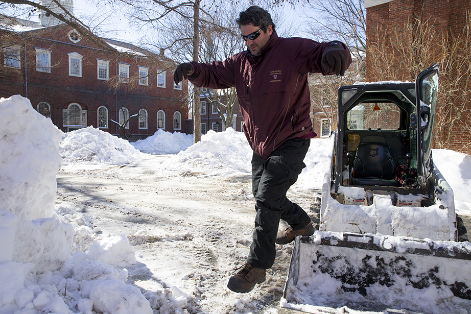 New England poet Emily Dickinson, no stranger to snow, once observed how “It flings a crystal veil.” That’s one way to put it. But when the snow flings itself across the Boston area in force as it’s done in a daisy chain of recent storms, it also can play havoc with daily life. At Harvard, the storms created sparkling winter tableaux. But for Harvard to return to normal, roads and paths had to be shoveled and salted, meals had to be prepared and served, emergency offices had to be properly staffed. Harvard staff members were there to meet the challenges, and sometimes to savor nature’s beauty.