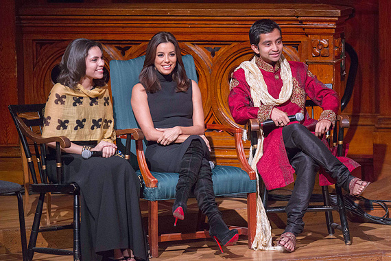 Acclaimed actress Eva Longoria was presented with the 2015 Harvard Foundation Artist of the Year award at the 30th annual Cultural Rhythms festival in Sanders Theatre on Saturday.