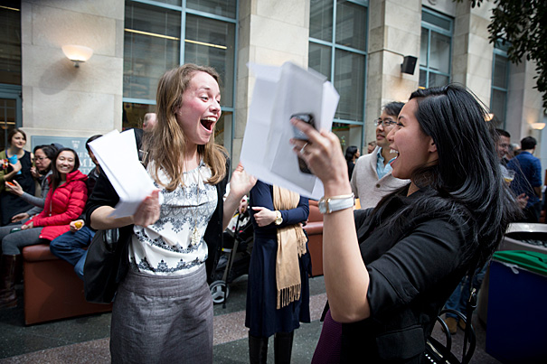 Students receive envelopes with their assigned residencies at noon on Match Day at Harvard Medical School. Photo by Rose Lincoln/Harvard Staff Photographer
