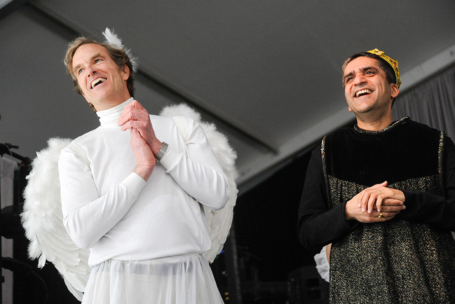 The festival is not simply a collection of individual works, but rather a collaborative effort tying Harvard groups to the broader community. A free and open event, the arts festival brought together performers in drag from Hasty Pudding Theatricals, musicians from the River Charles Ensemble, dancers from the Harvard Ballet Company, and faculty guest stars like Eck, College Dean Rakesh Khurana, Dean of Freshmen Tom Dingman, and Steven Pinker, the Johnstone Family Professor of Psychology.