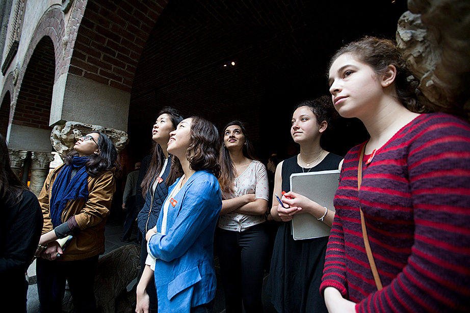 The students also did the equivalent of playing outside. On class outings, they watched plays, pondered great art, considered medievalism, and peered at and paged through rare books at Houghton Library.